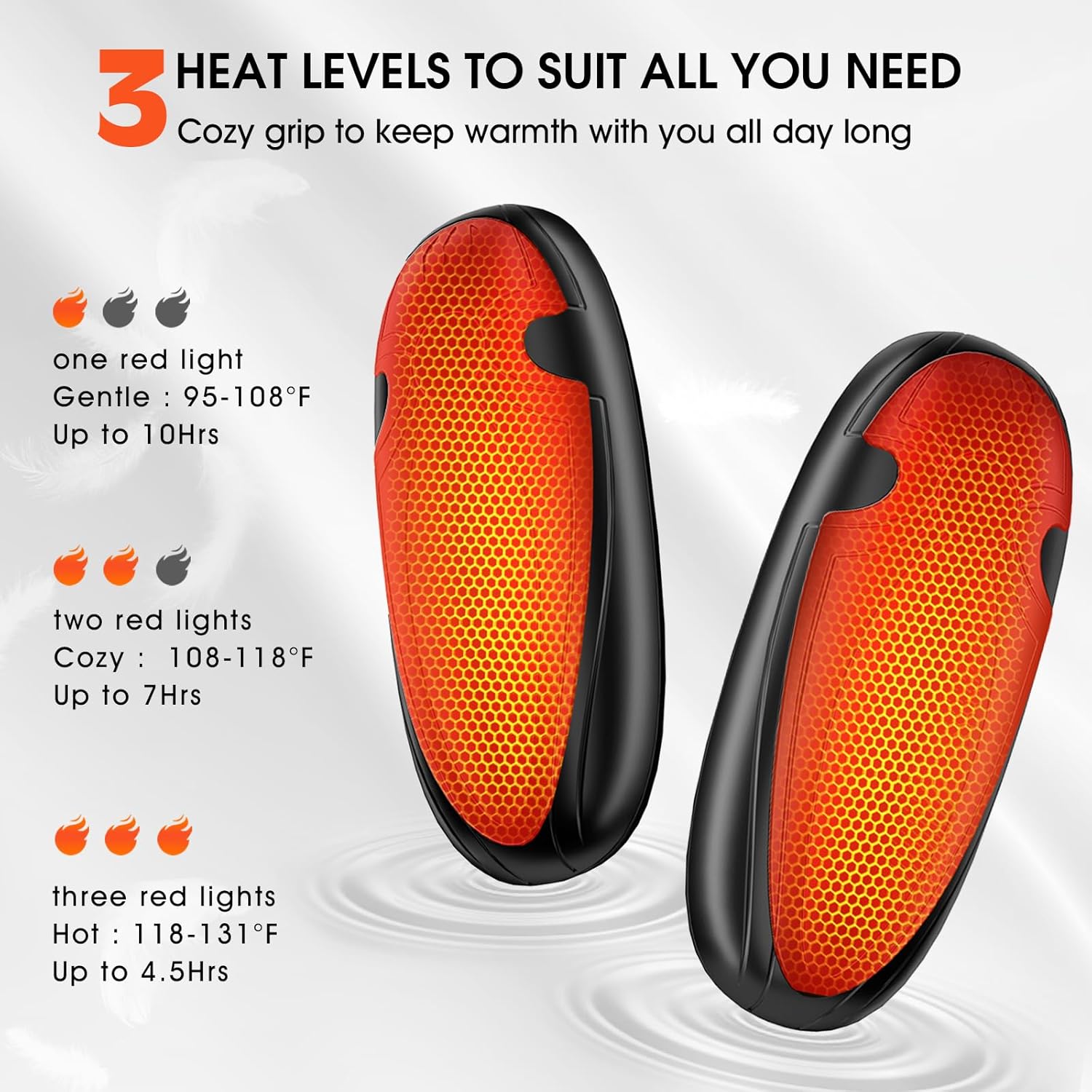 - Disfruta de calor sin esfuerzo con nuestro calentador de manos intuitivo. Un botón controla el calor instantáneo en 2 segundos y 3 configuraciones, desde 35 °C hasta 55 °C. Simplemente colócalo en el estuche de carga para una recarga segura y cómoda, en cualquier momento y lugar. Perfecto para usar tanto en interiores como en exteriores.