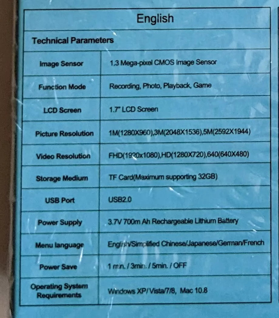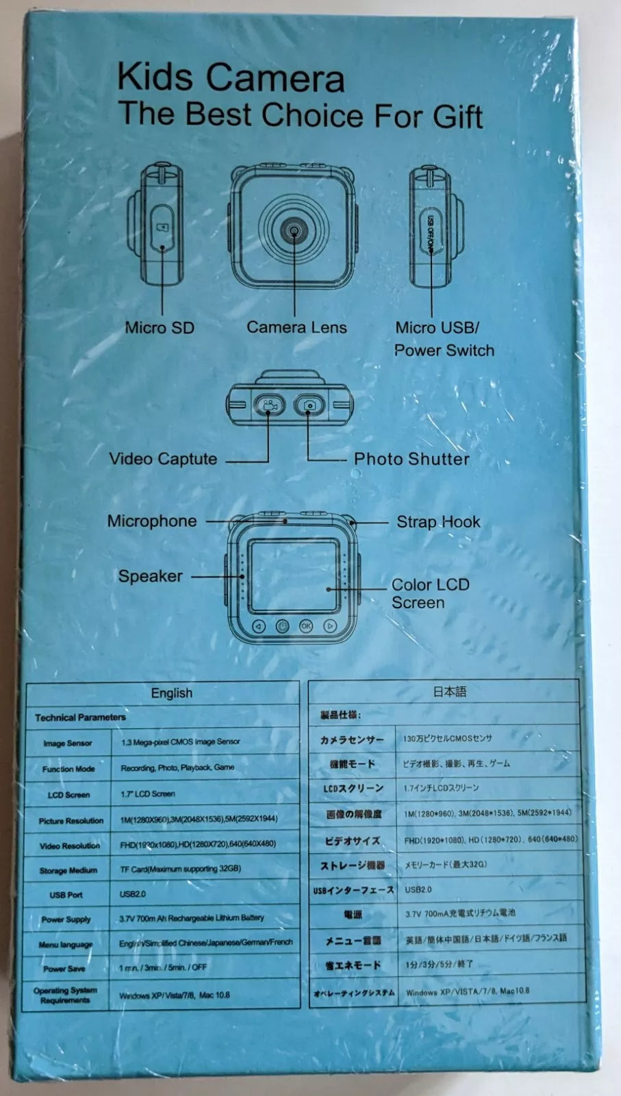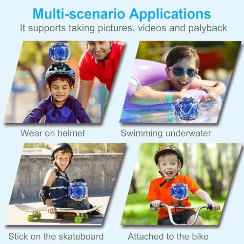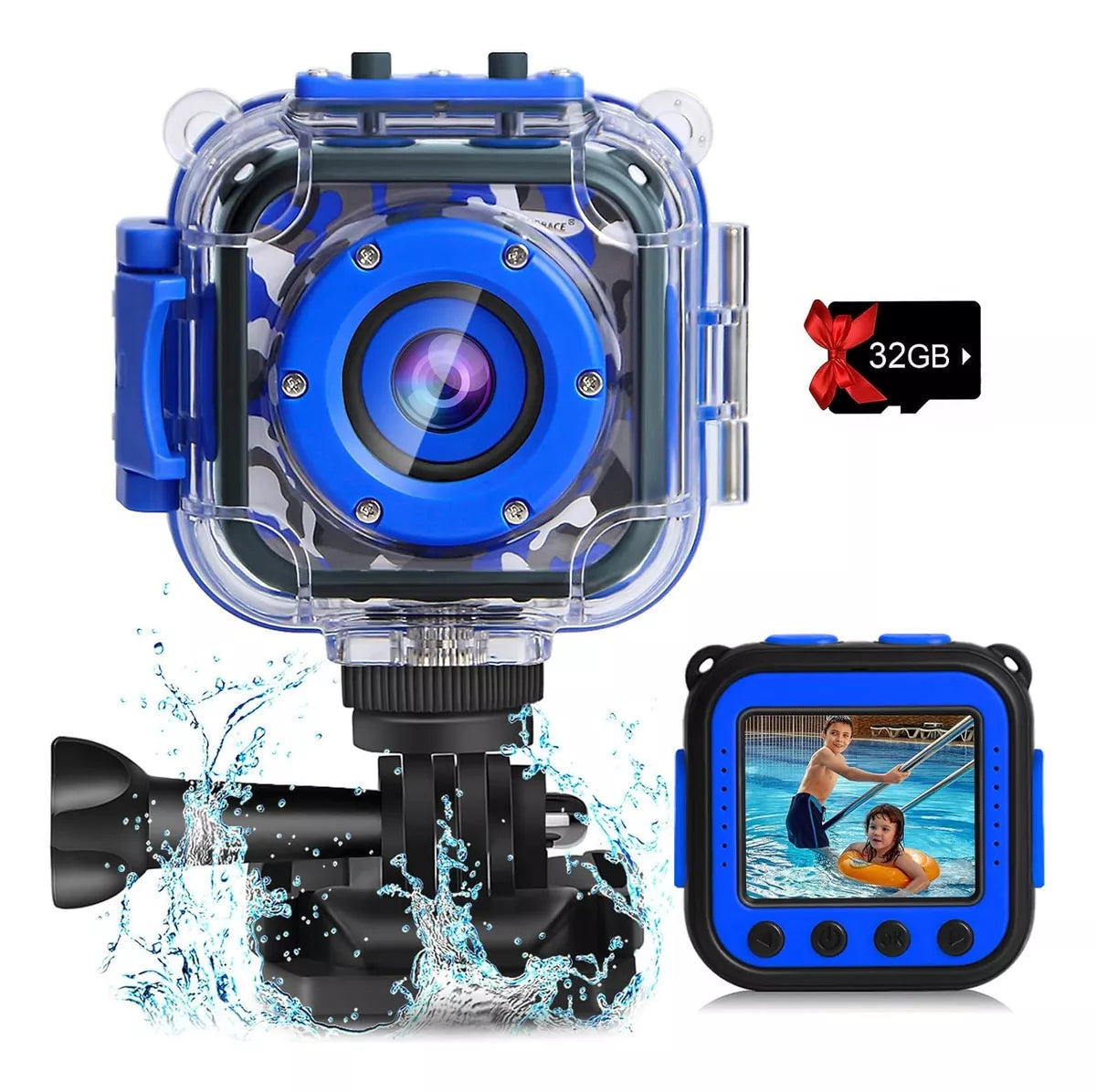 Cámara de Video Multifuncional para Niños: Esta cámara de acción para niños tiene un sensor de imagen CMOS, videos HD 1080P/30fps y fotos de 5MP, 40 marcos de fotos, 7 modos de video de color, zoom digital 4X.