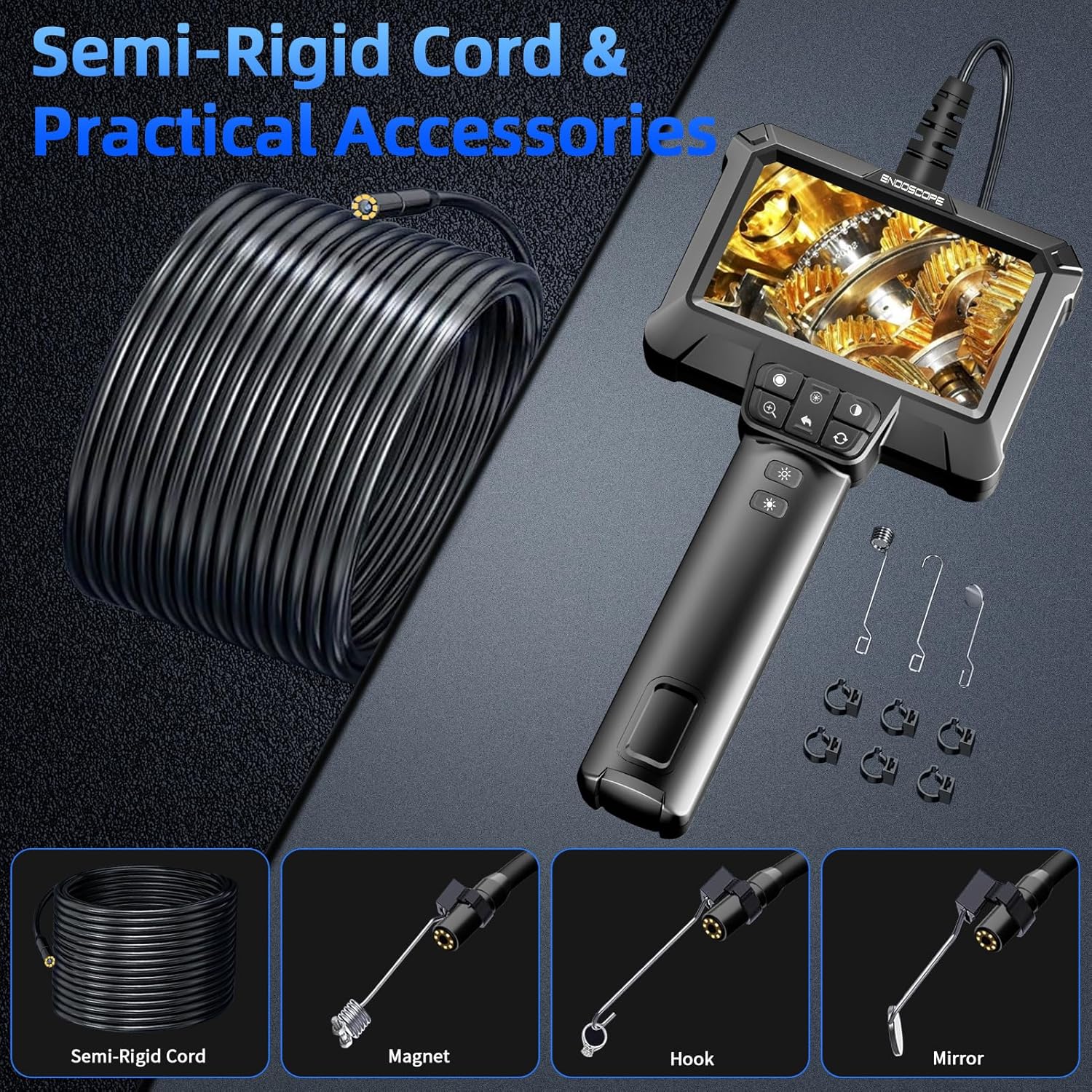 - Cable de 16.5 pies y endoscopio de alta calidad: el cable semirrígido de 16.5 pies es desmontable y flexible, lo que permite una fácil navegación en espacios estrechos y lo hace versátil para diferentes aplicaciones. IP67 impermeable y a prueba de polvo, el boroscopio de mano es adecuado para su uso en condiciones duras y húmedas. El diseño de agarre ergonómico y el peso ligero del endoscopio permiten el funcionamiento con una sola mano.