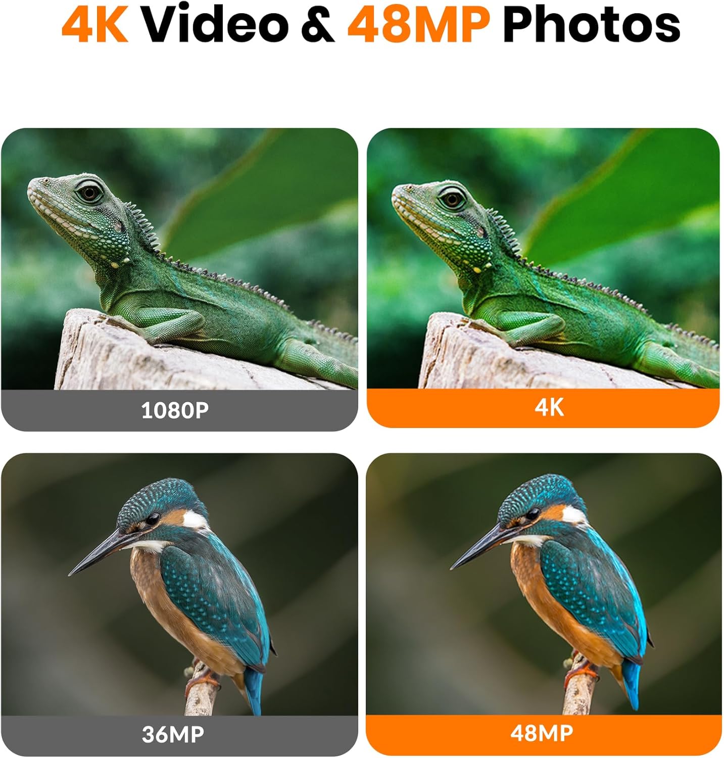 - Resolución ultra nítida: esta cámara backcountry ofrece video de audio HD 4K e imágenes de 48 megapíxeles, lo que le permite conocer de cerca el mundo de la vida silvestre y capturar más detalles con fotos y videos nítidos y de alta calidad
