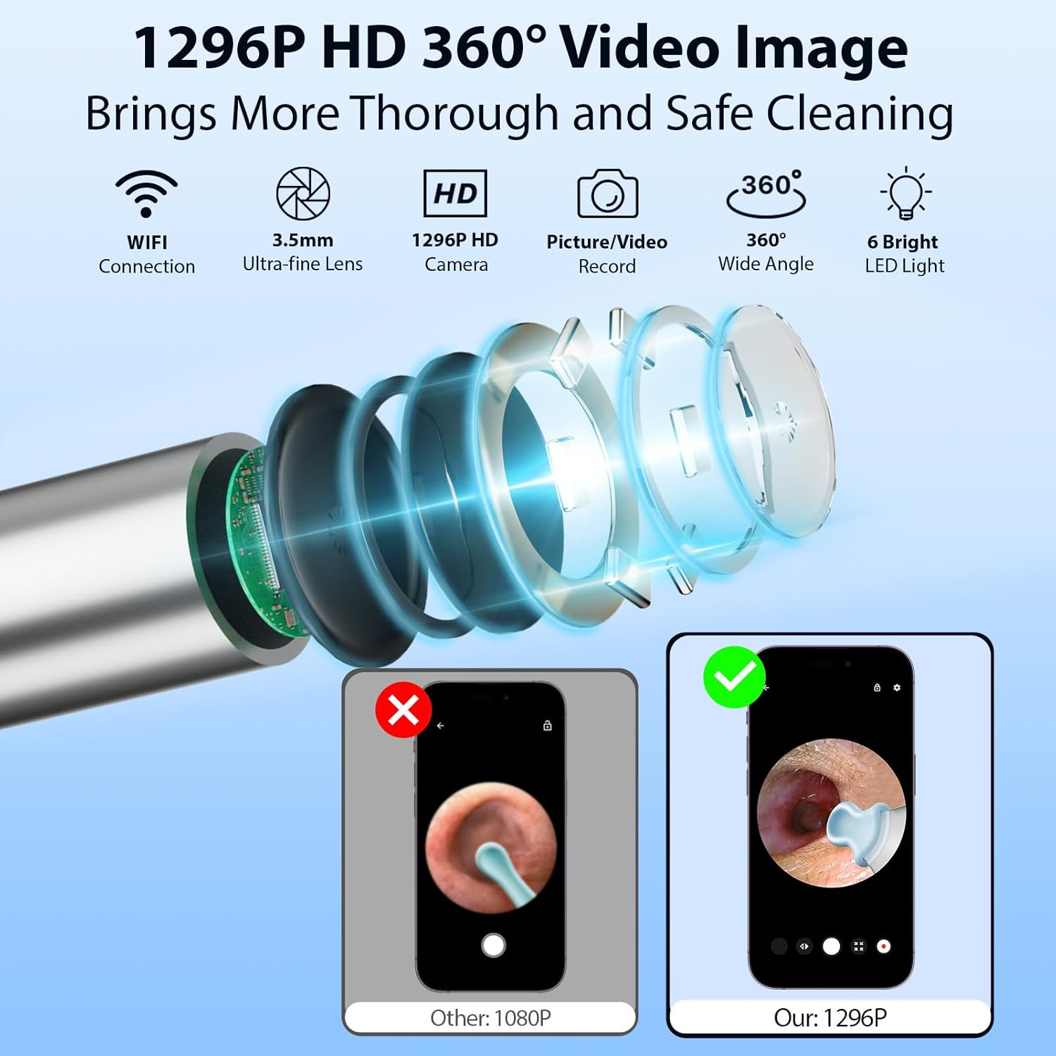 Cámara de sonda de canal auditivo HD 1296P - Limpieza segura, eliminación precisa de la cera del oído