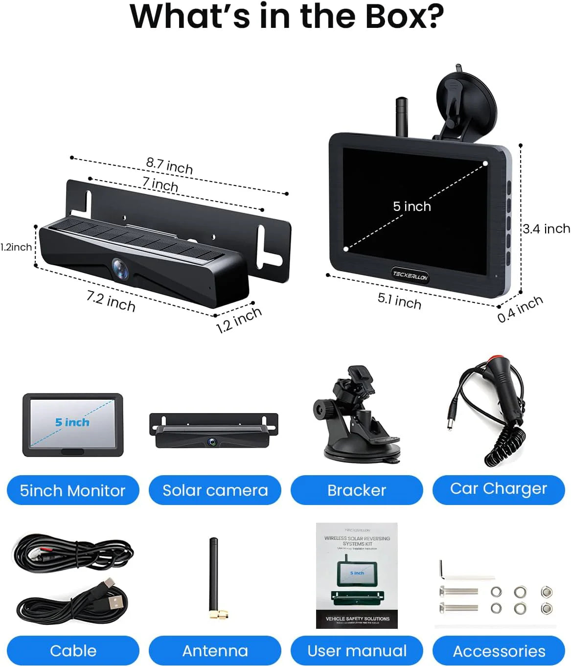 Cámara de respaldo inalámbrica, solar, monitor 1080P de 5"