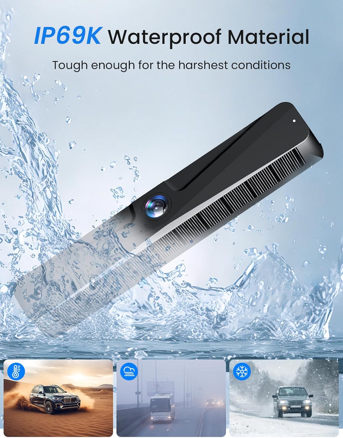 IP69K resistente al agua – Listo para cualquier clima: diseñado para la durabilidad, esta cámara de visión trasera cuenta con una clasificación IP69K, el más alto nivel de protección impermeable. Lluvia, nieve, calor o lavados de autos: funciona perfectamente en cualquier condición sin niebla o distorsión de la imagen.