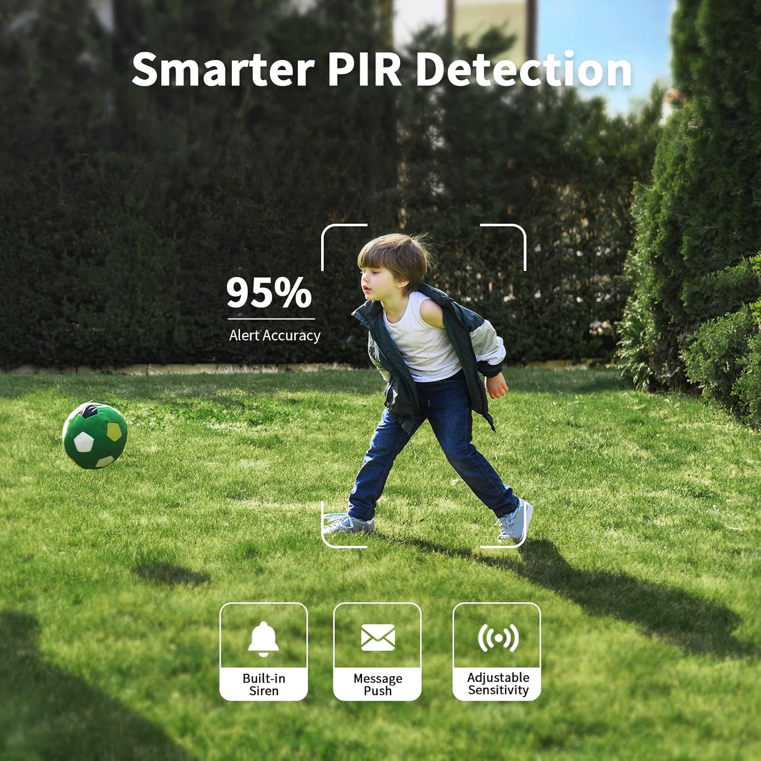 - Sensor PIR y audio bidireccional: adopte un sensor de movimiento PIR más sensible, reduzca las falsas alarmas y las alertas instantáneas. Además, la cámara inalámbrica para exteriores admite la función de conversación bidireccional y el acceso remoto, lo que le permite tener una conversación entre usted y su visitante.