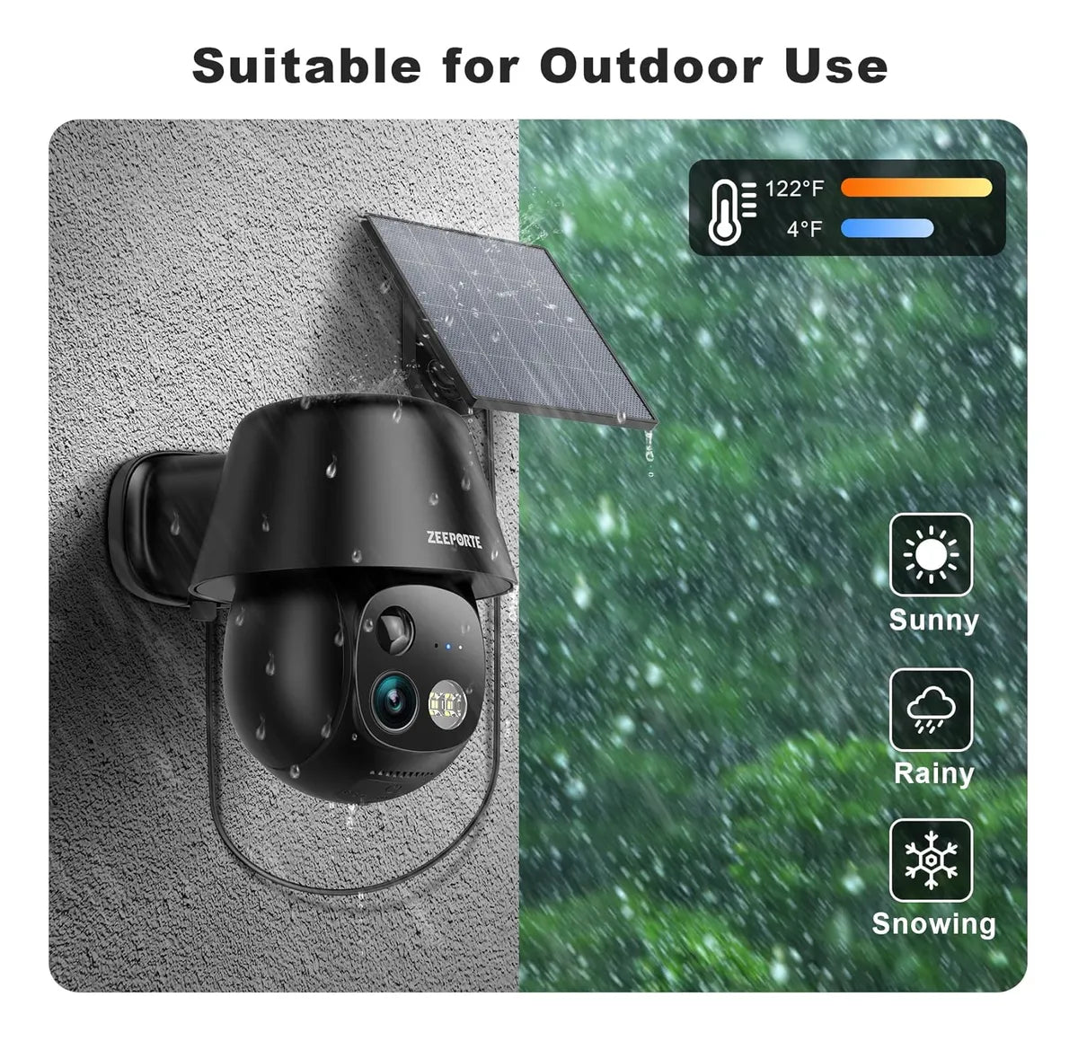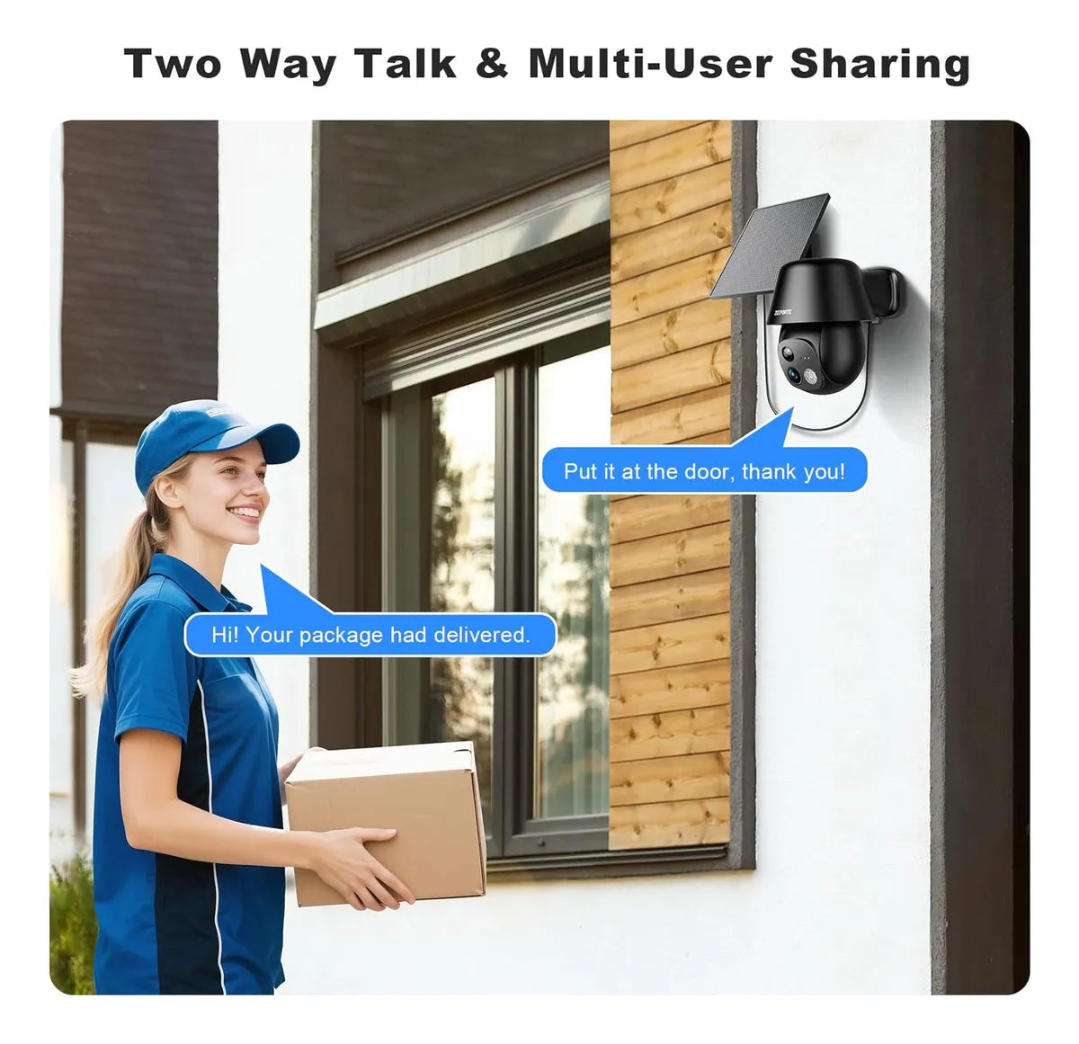 Esta cámara de seguridad solar inalámbrica para exteriores ofrece funciones avanzadas como resolución 2K para imágenes claras y detalladas, además de visión panorámica e inclinación que permiten ajustar el ángulo de monitoreo según tus necesidades. Cuenta con alimentación solar que asegura un funcionamiento continuo sin cables ni recargas, y detección de movimiento para alertarte en tiempo real. Su diseño resistente al clima la hace ideal para cualquier entorno exterior, brindándote vigilancia confiable y eficiente en todo momento.