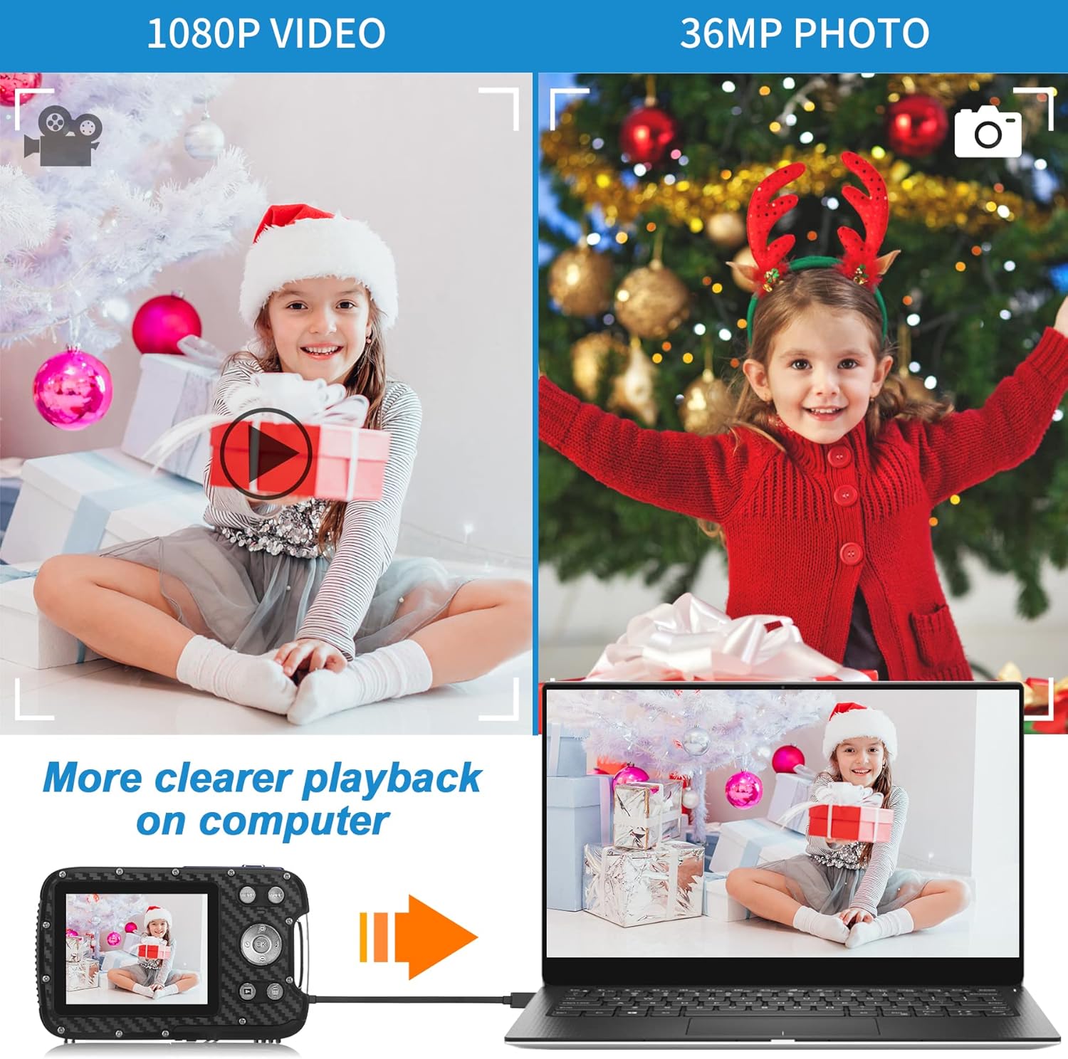 - Cámara digital impermeable: la cámara digital compacta puede grabar video HD1080P y resolución de imagen de 36 MP, lo que te ayuda a capturar y grabar los momentos memorables más emocionantes con imágenes o videos de alta calidad, equipada con pantalla LCD IPS de 2.8 pulgadas, zoom digital 8X, batería recargable y tarjeta SD de 32G. Ideal para viajes, fiestas familiares, estudios.