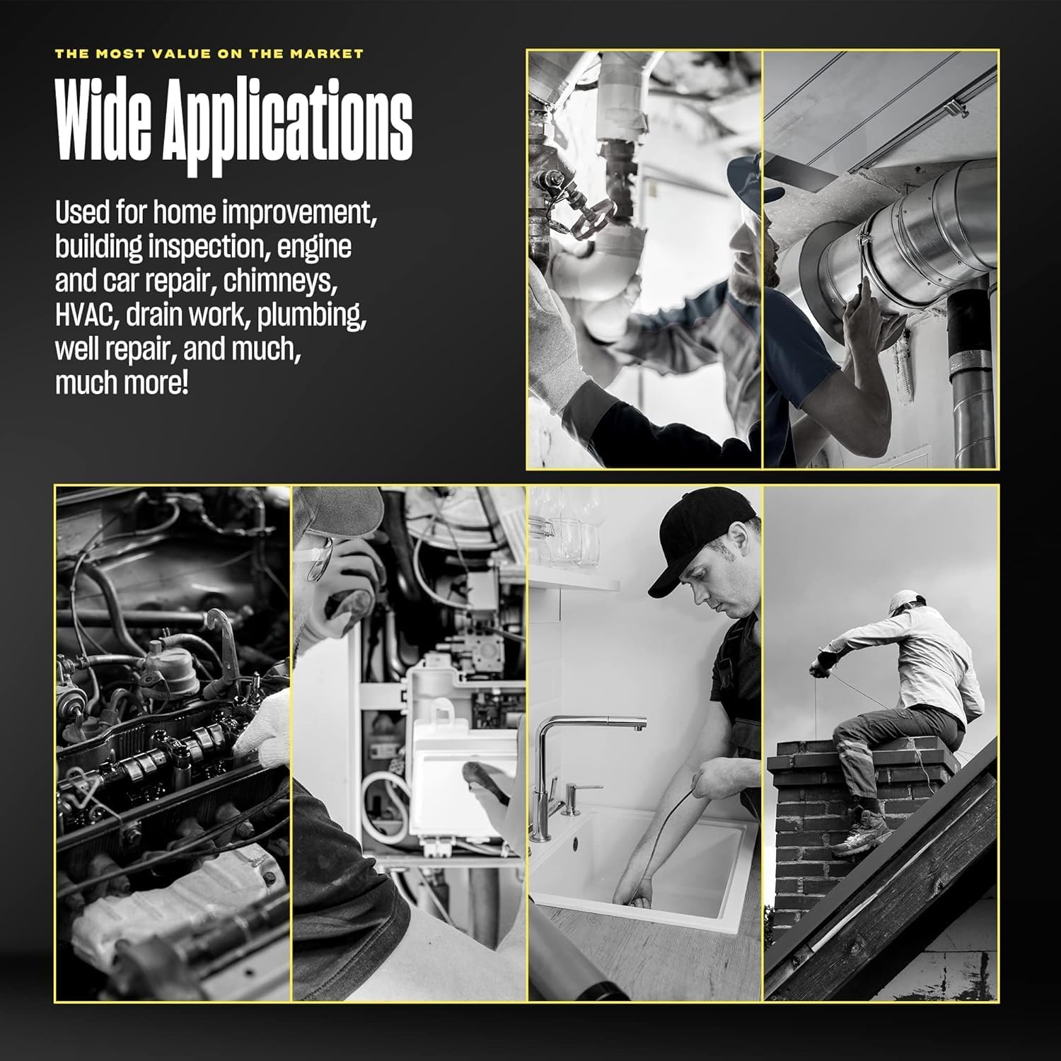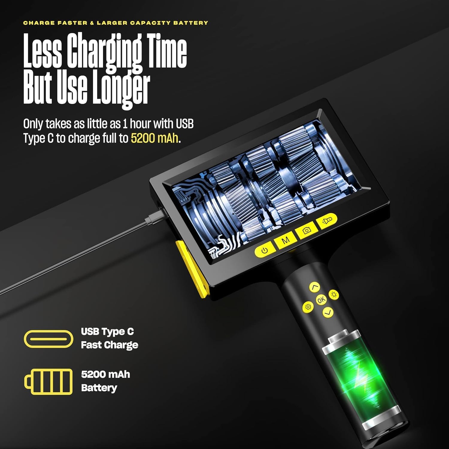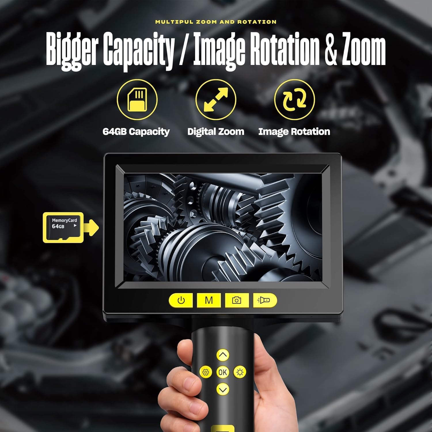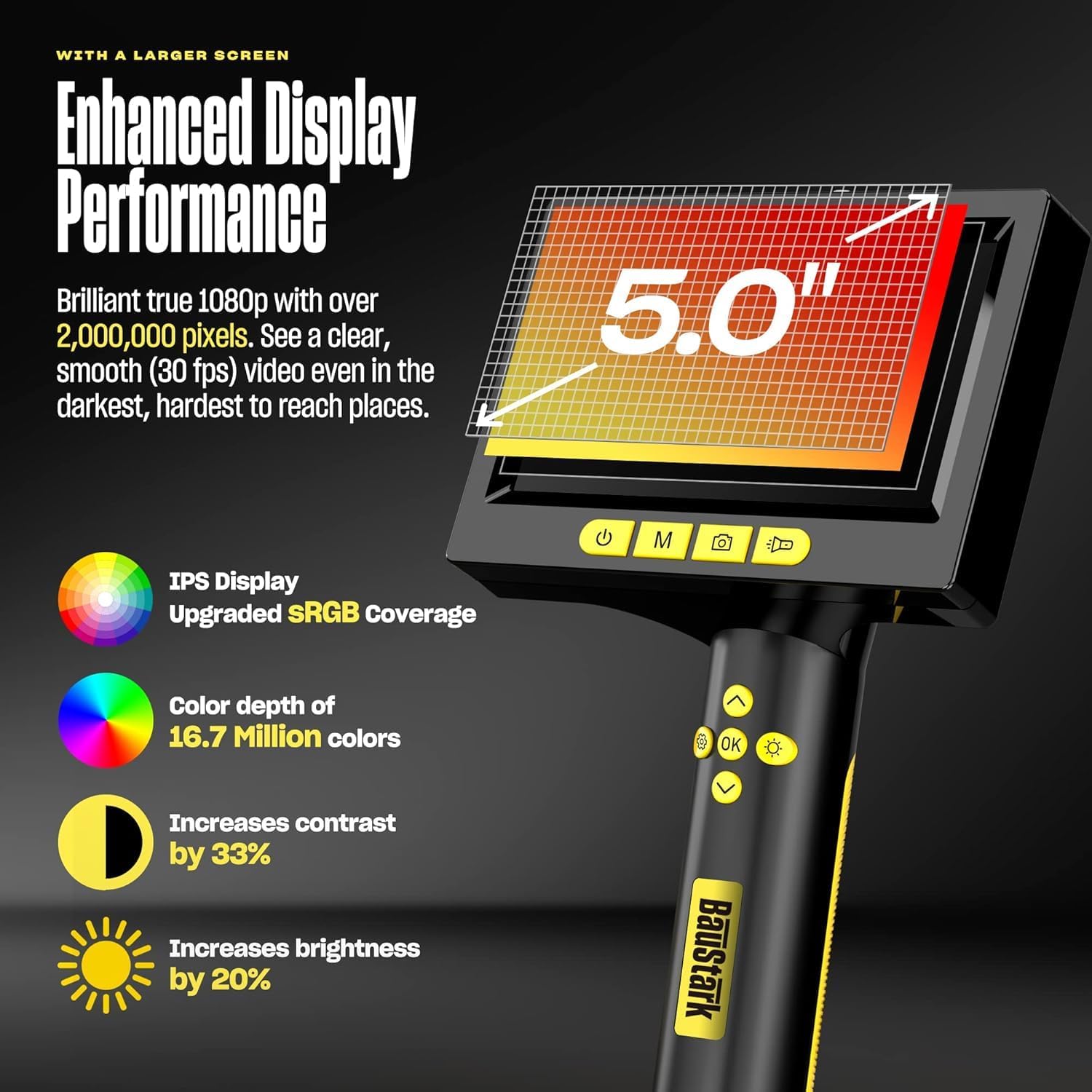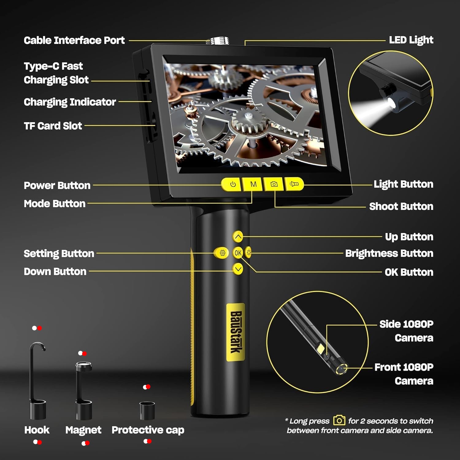 - Imágenes de primera: Evite las cámaras engañosas que prometen 1080p, pero ofrecen imágenes granuladas de menor resolución a menos de 10 fotogramas por segundo. Nuestra cámara ofrece auténtica alta definición y 1080p tanto en las cámaras frontal y lateral como en la pantalla. ¡Imágenes nítidas y fluidas son esenciales para esas zonas oscuras y difíciles de alcanzar!