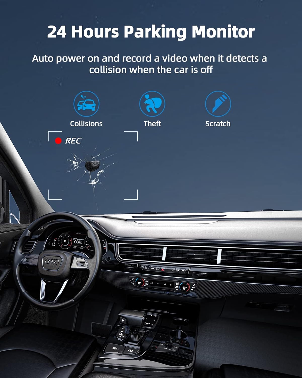 - Grabación en bucle y bloqueos de accidentes de emergencia: el juego de cámara para tablero de automóvil viene con tarjeta SD de 32 GB que tiene la función de grabación en bucle, cuando la tarjeta SD está llena, la cámara de tablero sobrescribirá automáticamente el video más antiguo para garantizar una grabación continua; la cámara del tablero tiene sensor G. (Por favor, ponte en contacto con nosotros para reemplazarlo si la alta temperatura hace que la parte superior de la cámara del tablero se derrita, la ventosa se caiga o el soporte se deforme).