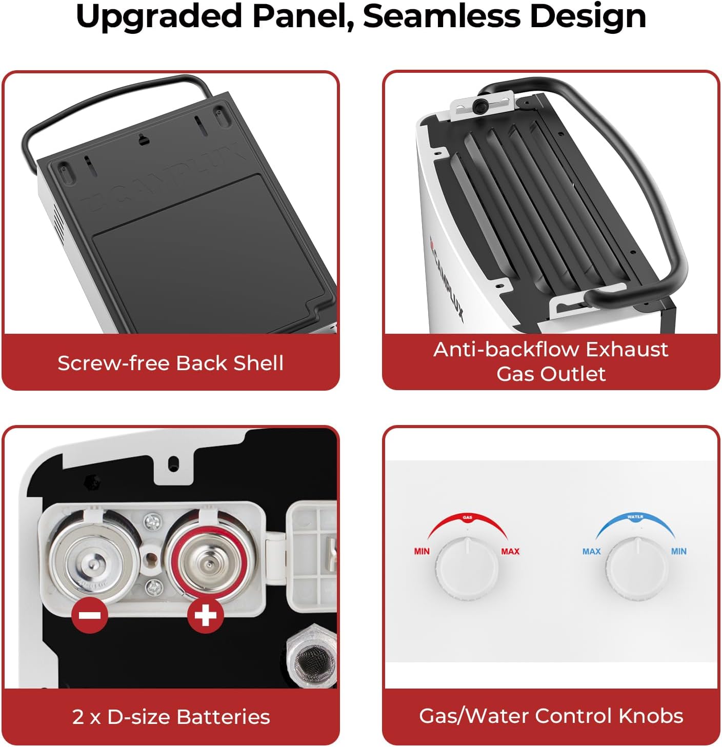 CAMPLUX Calentador de agua sin tanque para exteriores, 1.32 GPM portátil.
