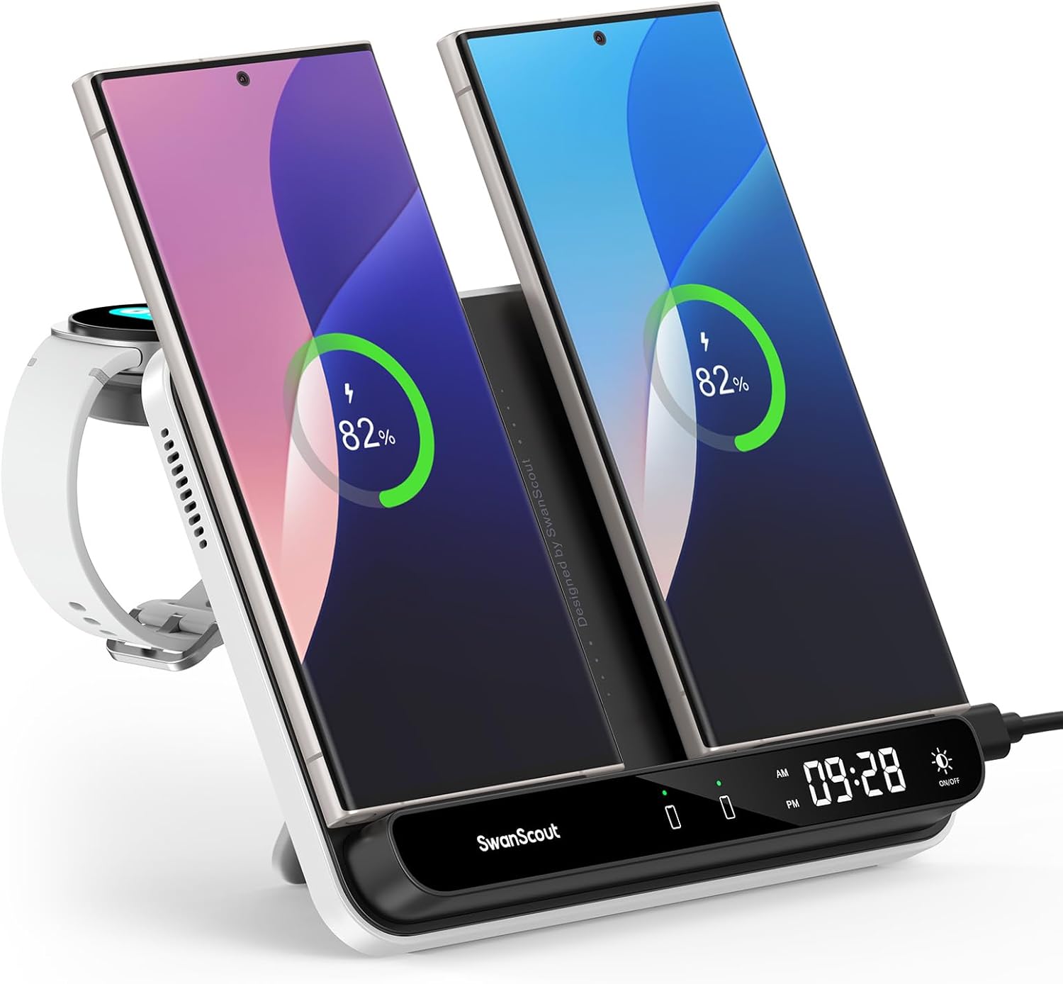 - Carga Dual para Teléfonos: El SwanScout S10031 carga dos telefonos al mismo tiempo. Es ideal para tu celular personal y el del trabajo, o para compartirlo con familiares. Reduce el desorden de cables y cargadores, manteniendo tu escritorio organizado