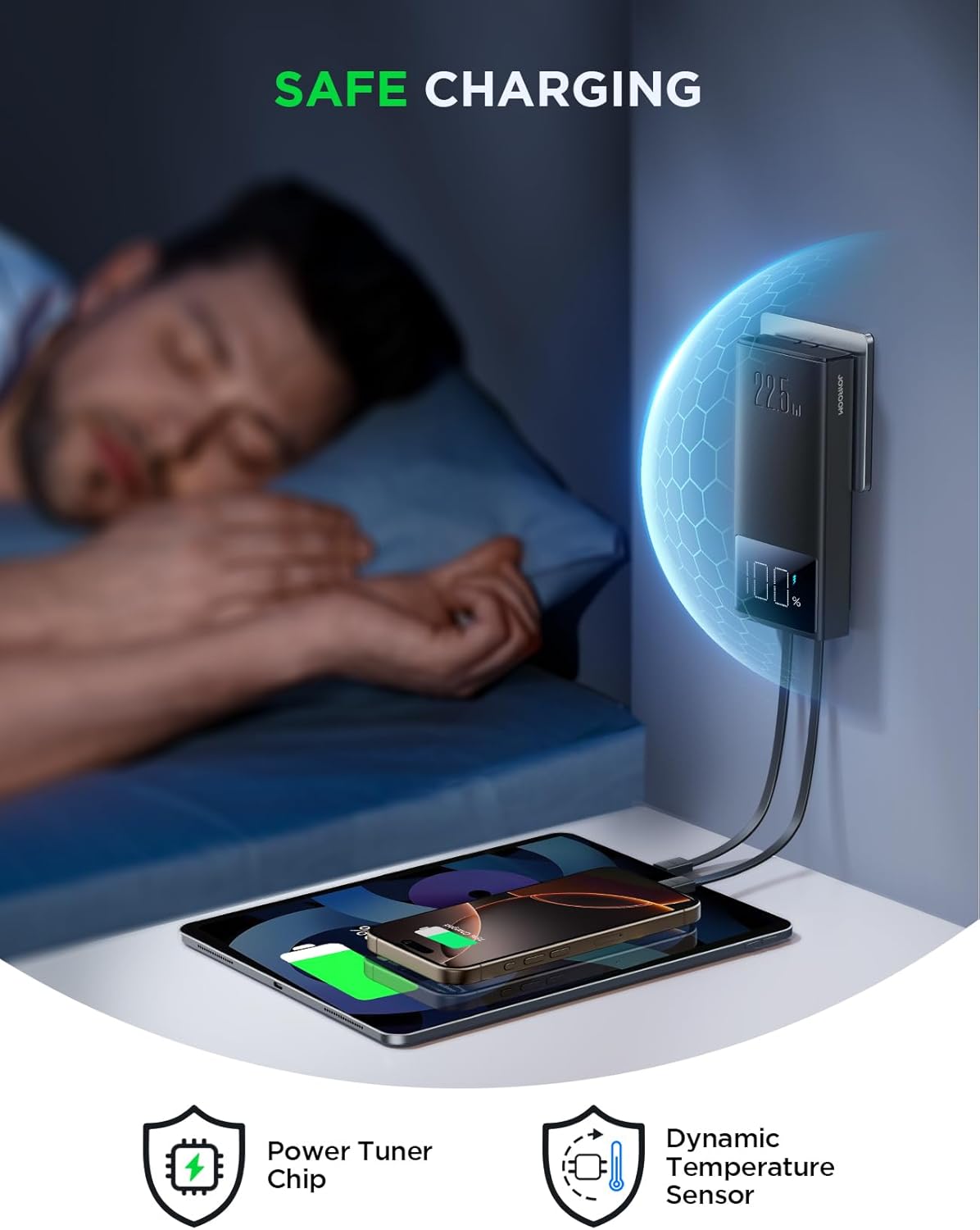 - Cargador seguro para iPhone: el cargador de teléfono portátil tiene 10 capas de protección múltiple del sistema, núcleo de hielo IC integrado a baja temperatura, monitoreo inteligente de voltaje y corriente, evita activamente sobrecarga, sobredescarga, cortocircuito, alta temperatura y una serie de peligros potenciales, creando un entorno de carga seguro para ti
