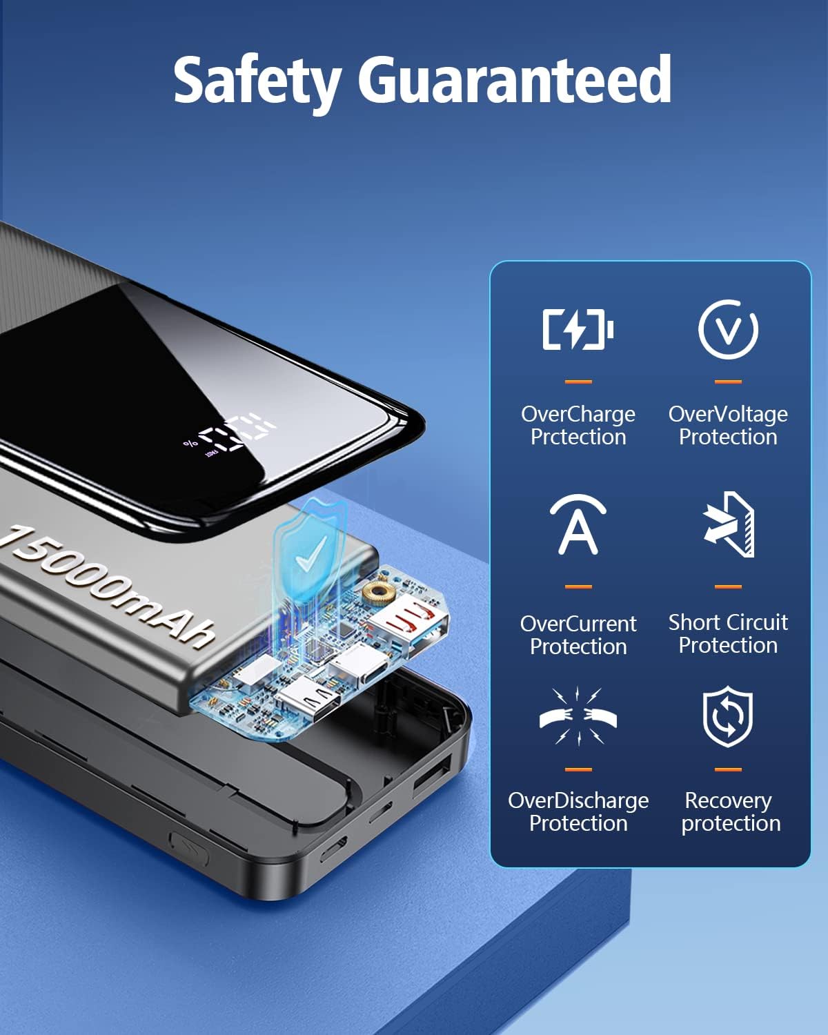 - Cargador portátil con 2 cables incorporados >>>: El paquete de baterías PB-08 tiene 1* cable iOS, 1* cable tipo C, 3* puertos de carga (USB-A, Tipo-C, Micro), que admite carga casi todos los dispositivos inteligentes en el mercado. Ampliamente compatible con iPhone 16/15/14/13/12/11 series, iPad series, Samsung S23, S22, S21, S20, serie Google y otros teléfonos celulares, tabletas o dispositivos electrónicos. Ya no hay necesidad de llevar varios cables durante el viaje. (El adaptador no incluido) (Aprobado por la aerolínea)