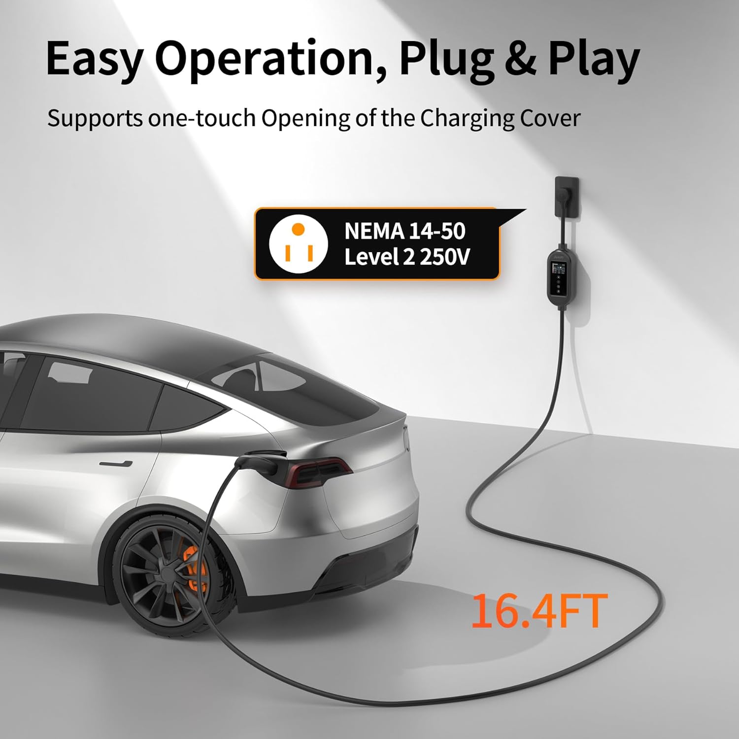 - Diseño duradero y fiable: hecho de material TPE de alta resistencia con una carcasa resistente y ultra alta resistencia, el cargador Tesla de nivel 2 está diseñado para durar y soportar el uso diario, proporcionando tranquilidad para un uso a largo plazo.