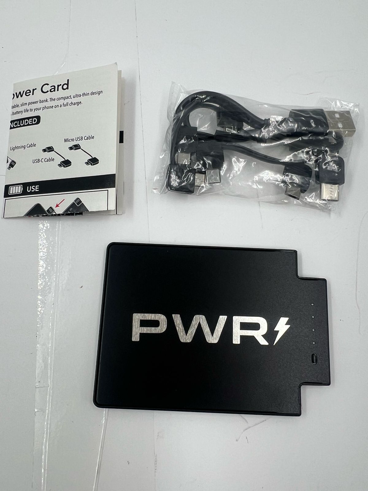 La elegante y delgada PWRCard es tan pequeña como unas cuantas tarjetas de crédito apiladas. Se guarda fácilmente en cualquier billetera o bolso, y sus indicadores LED te indican cuánta carga tiene. Además, con su cable integrado, nunca perderás el cable de carga.