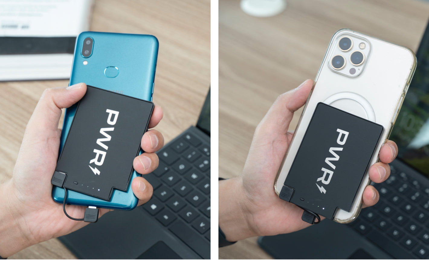 PWRCard se enorgullece de ser el cargador de teléfono más delgado del mundo. Llévalo fácilmente en tu billetera, en cualquier bolsillo o incluso en el bolso más pequeño.