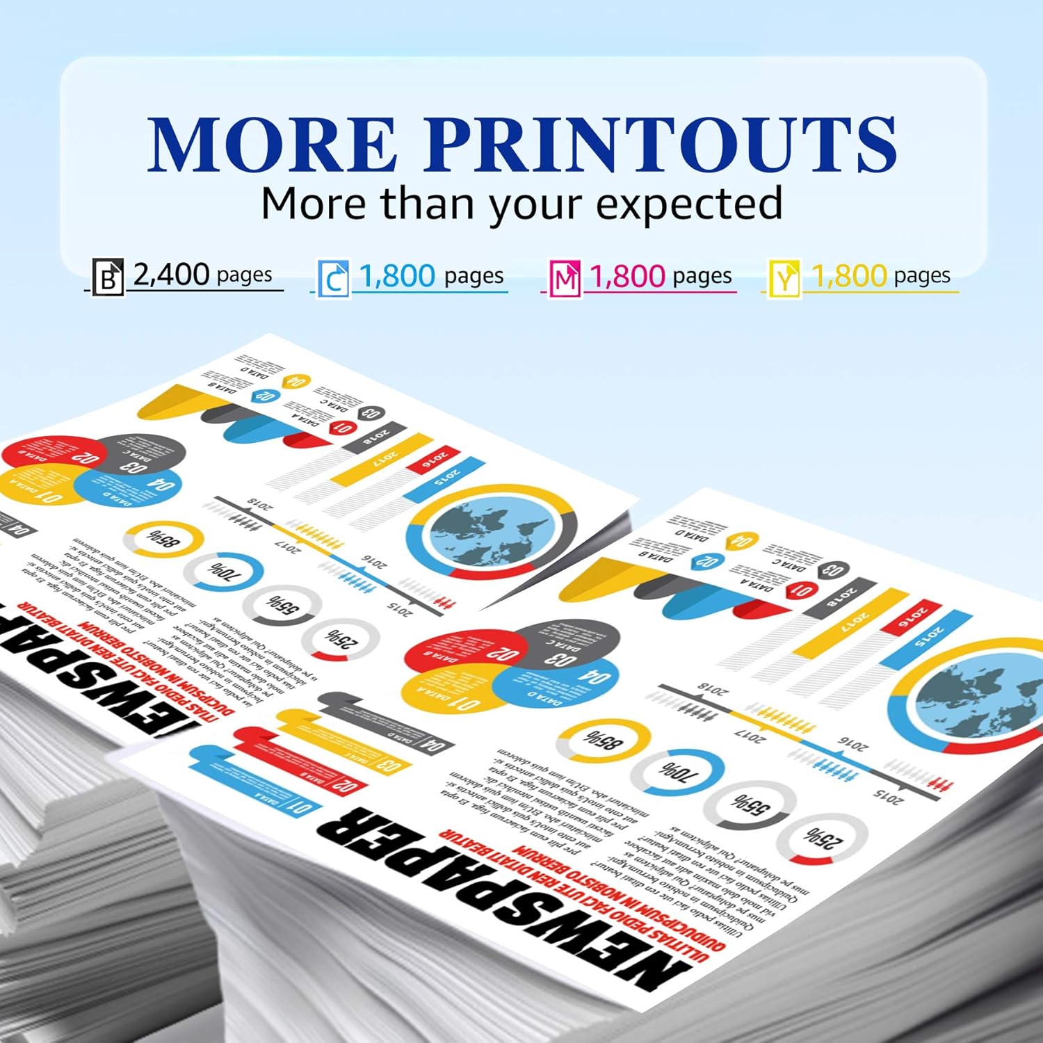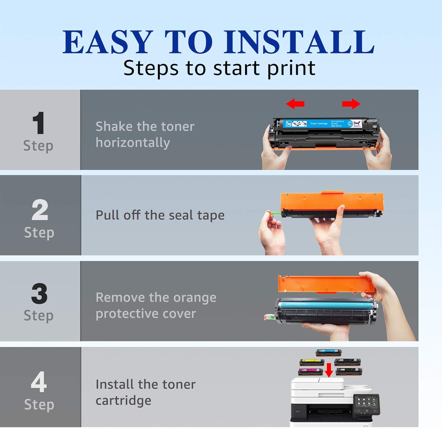 - Recibirás: (5 paquetes) 2 paquetes de tóner negro compatible, 1 paquete de tóner amarillo, 1 paquete de tóner magenta, 1 paquete de tóner cian.