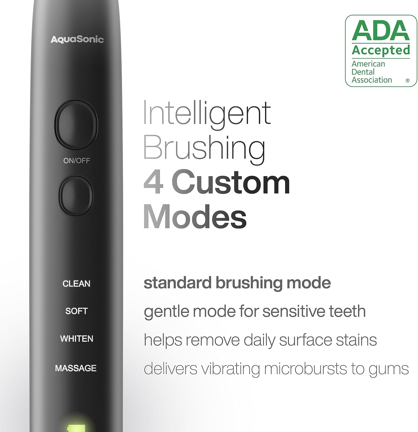 - Aceptado por el Consejo de Asuntos Científicos de la Asociación Dental ericana (ADA) – Ponemos nuestro dinero donde está tu boca. Invertir en tecnologías de cuidado bucal premium ha ganado a la serie Black el prestigioso sello de aprobación ADA. Ha demostrado eficacia en la eliminación de la placa y ayudar a prevenir y reducir la gingivitis. Black Series va más allá de la limpieza de los dientes, proporciona un cuidado bucalpleto con modos únicos que incluyen uno blanquear y pulir dientes y otro mejorar la salud de las encías.