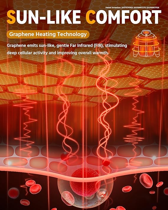 - Calentamiento de grafeno revolucionario: abraza el futuro del calor con nuestra tecnología con infusión de grafeno, proporcionando calor rápido y consistente en toda la chamarra.