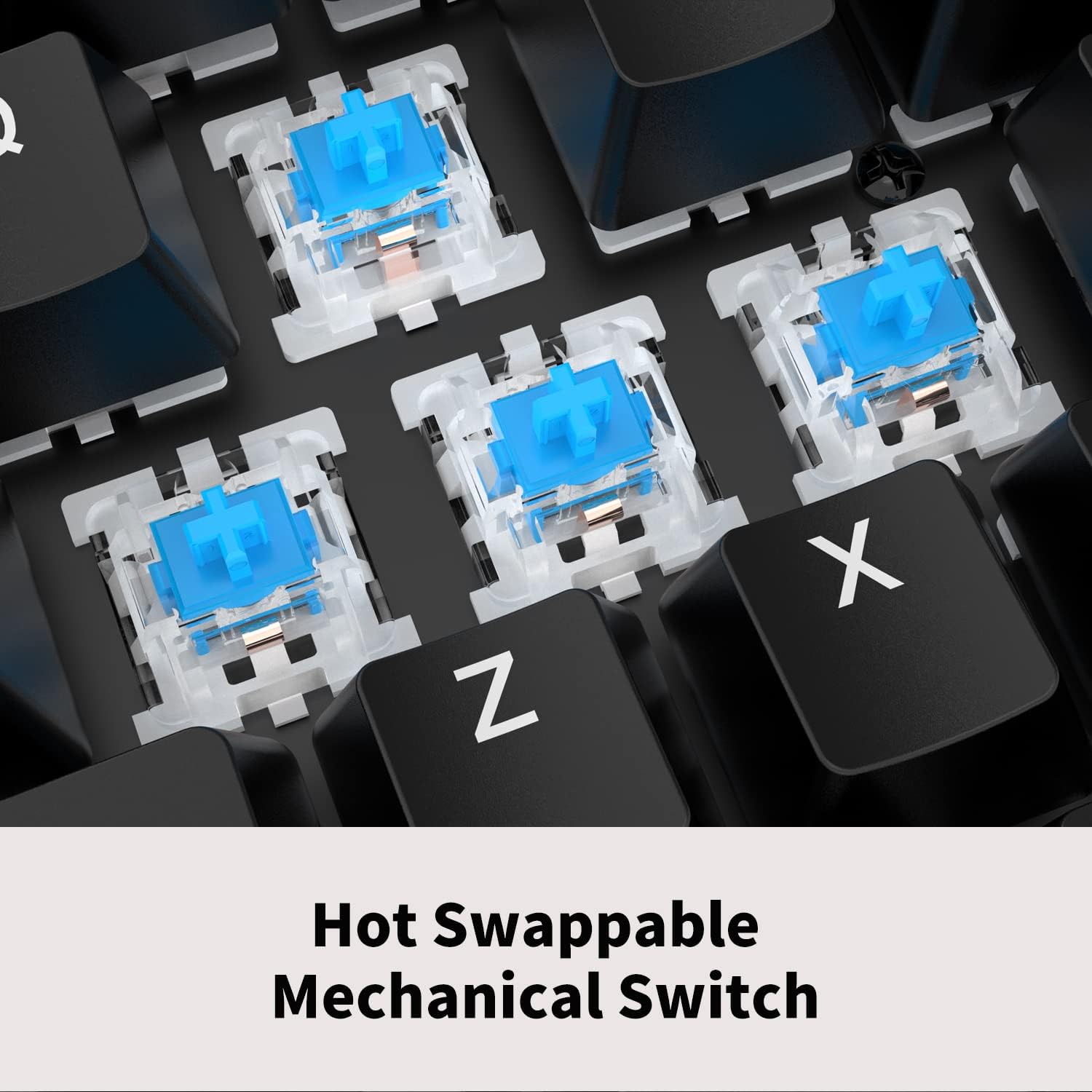 PCB de intercambio en caliente te permite reemplazar interruptores de 3 pines y 5 pines, compatible con cualquier interruptor de estilo MX libremente (marcas como Cherry, Gateron, Kailh, etc.). Equipado con un distintivo interruptor azul con sonido de clic y golpe táctil, es especialmente adecuado para aquellos que buscan una experiencia de escritura satisfactoria y precisión.