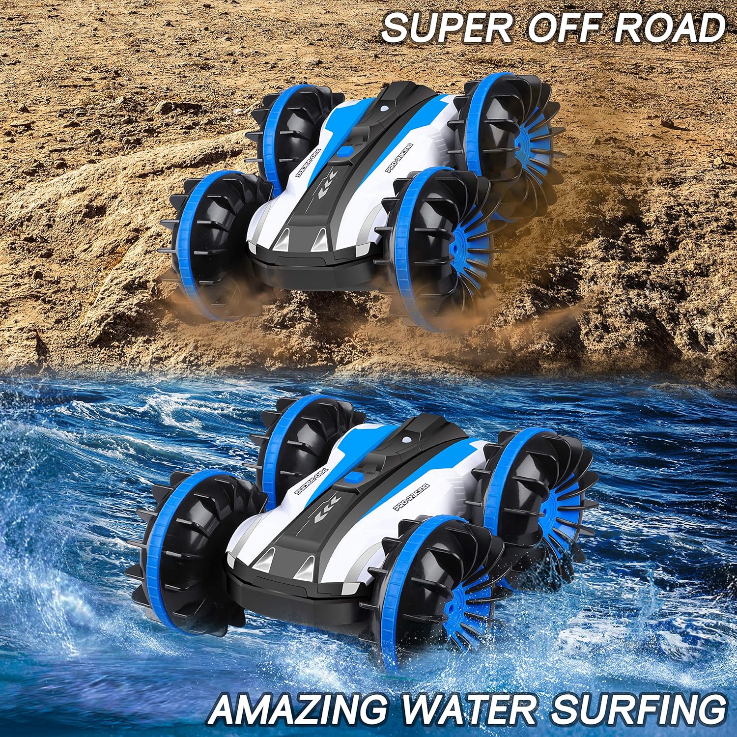 Coche anfibio RC para niños, de 2.4 GHz a control remoto.