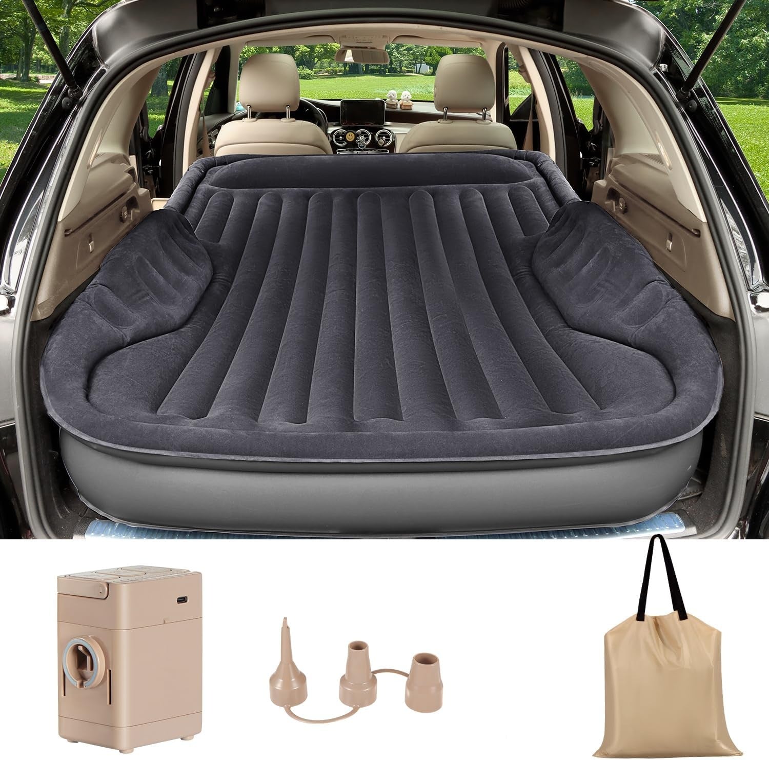 Colchón de aire autoinflable para SUV con bomba eléctrica integrada, colchón de aire para automóvil con almohada para maletero, colchón portátil para automóvil para viajes y campamento.