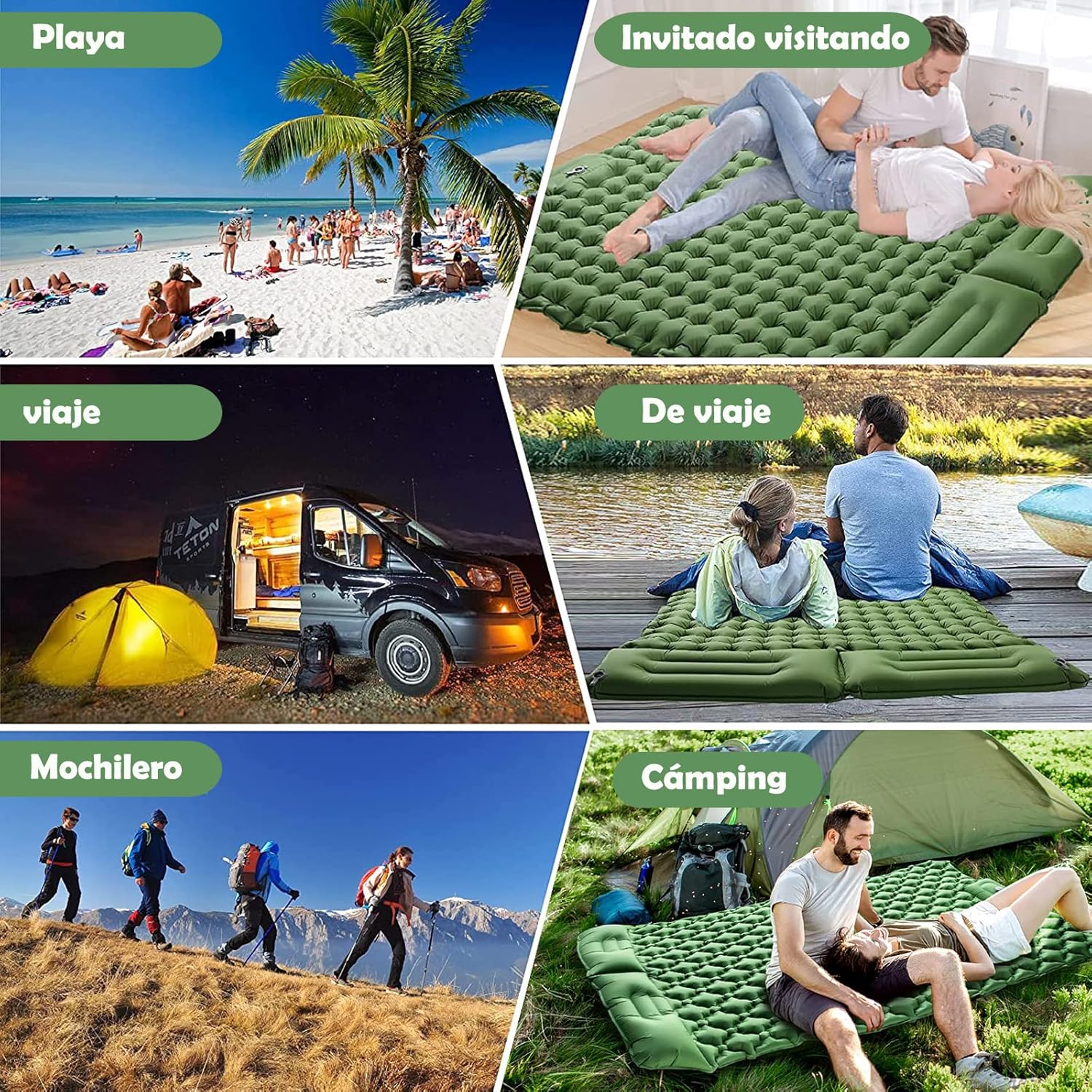 Colchoneta para acampar con bomba de pie, con Almohadas.