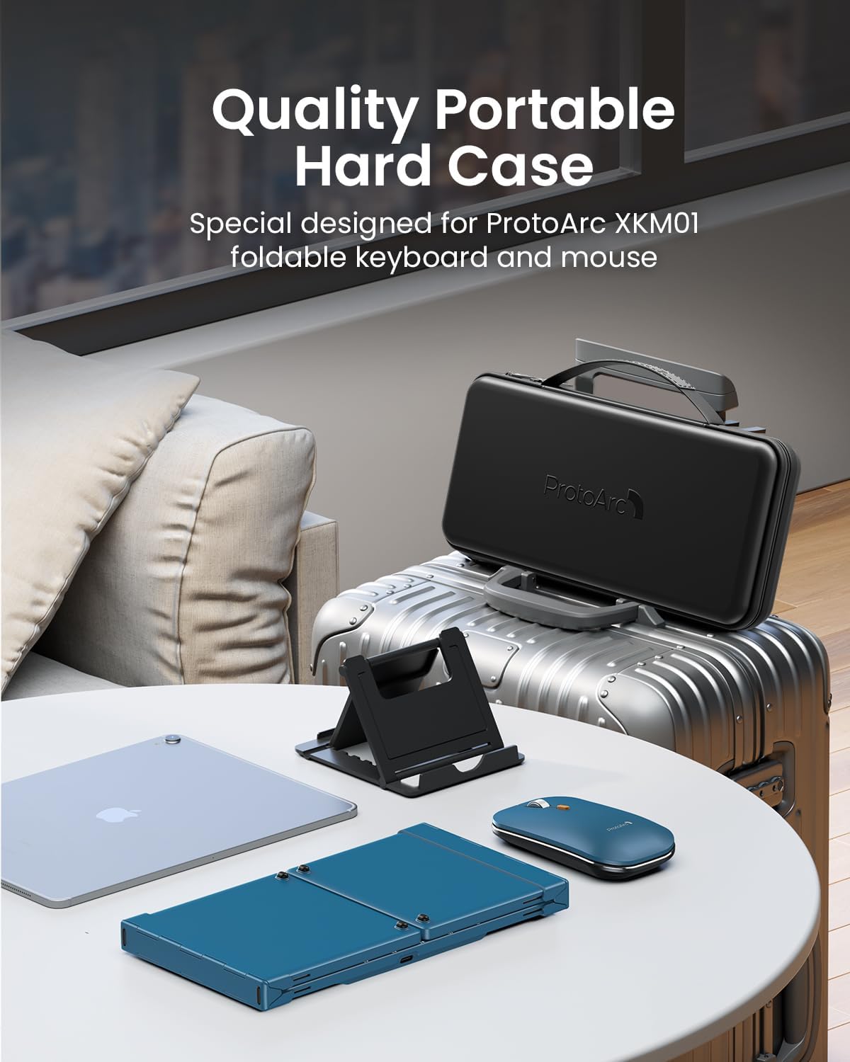 - Kit todo en uno listo para viajar: incluye una funda rígida de transporte (12 x 5.6 x 1.6 pulgadas) con un soporte plegable para iPads/tablets de 4 a 11 pulgadas. Las bisagras internas de aluminio sobreviven más de 10.000 pliegues, más resistentes para viajes frecuentes. Despliega y trabaja al instante, cero tiempo de configuración