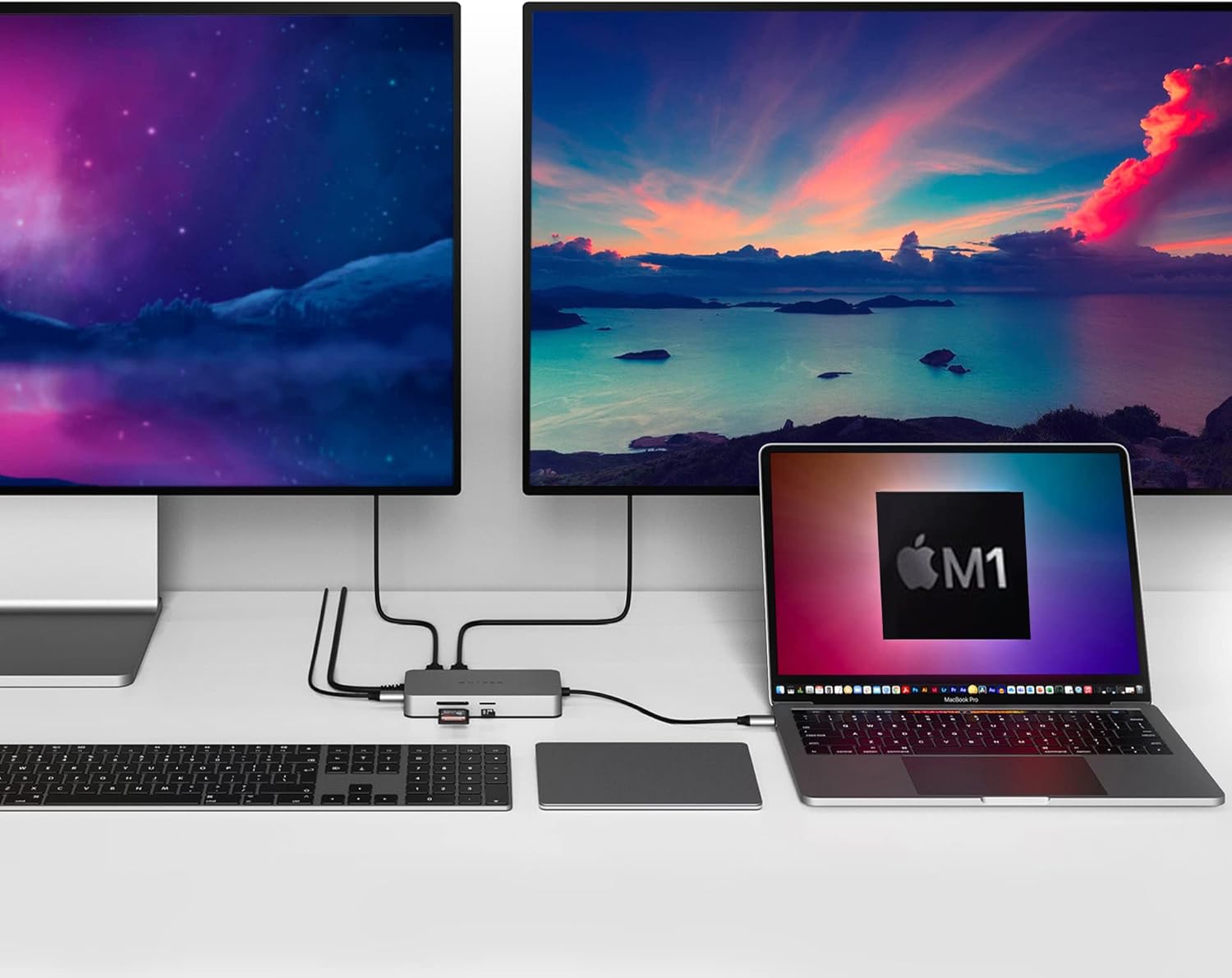 Concentrador USB C Hyper Drive M1 M2 para MacBook Pro: concentrador USB 10 en 1 con doble HDMI 4K, Ethernet, USB-A y adaptador USB C.