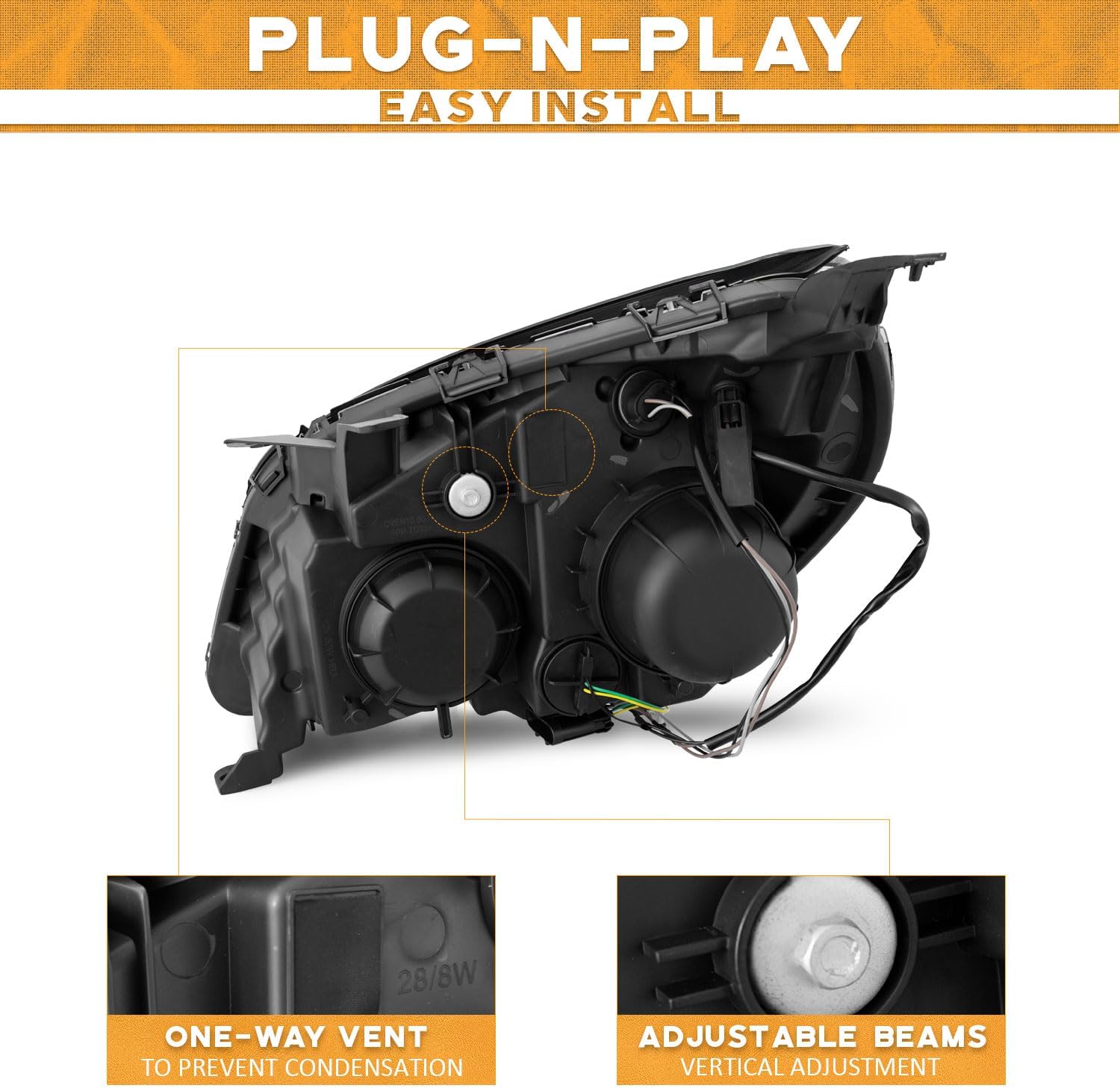 - Diseñado para un rendimiento óptimo, nuestros faros cumplen con los estándares DOT (Departamento de Transporte) con cada diseño. Además, nuestro fabricante tiene una certificación de sistema de calidad IATF16949, lo que te da la tranquilidad de que estás comprando productos excepcionales.