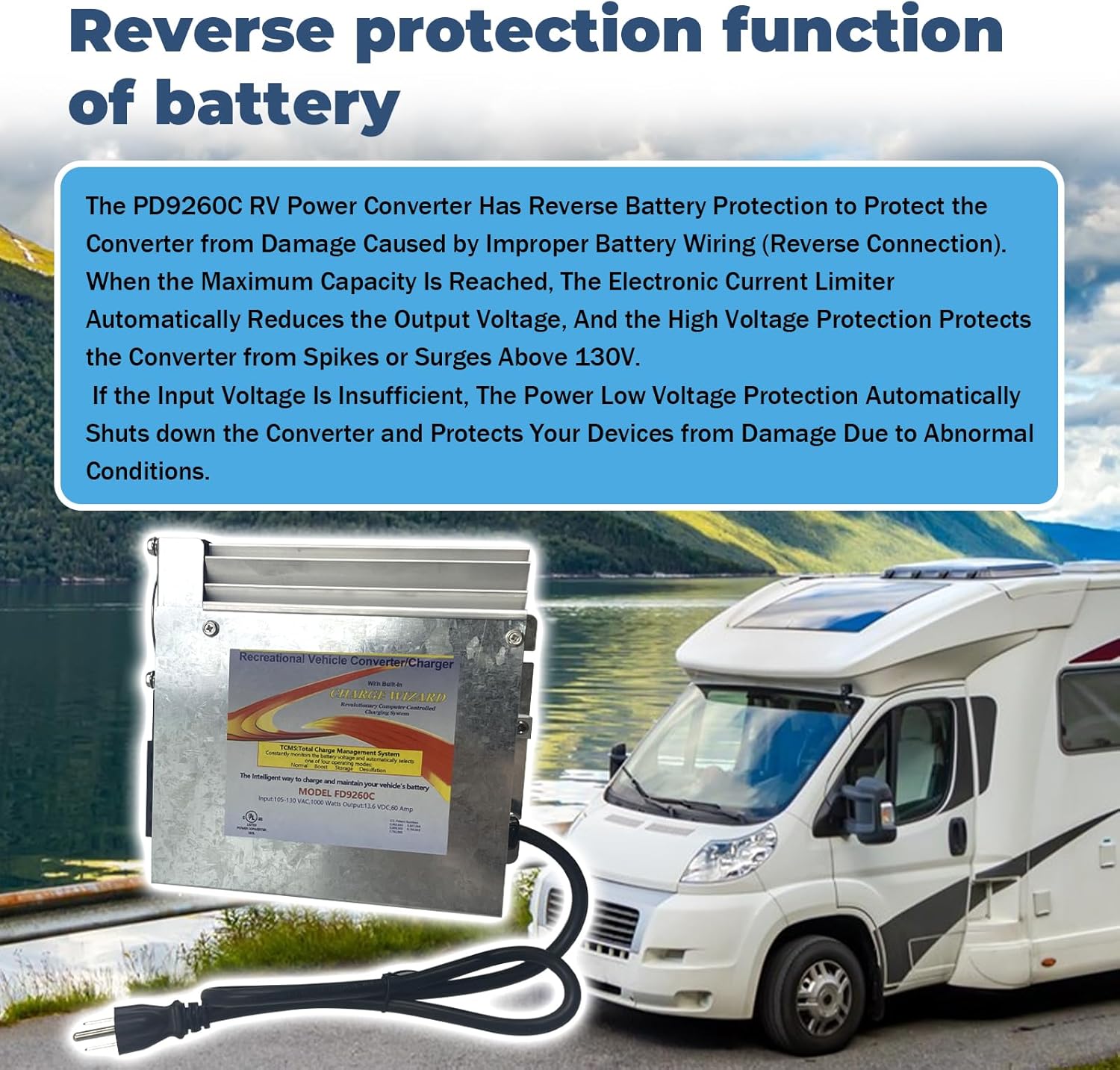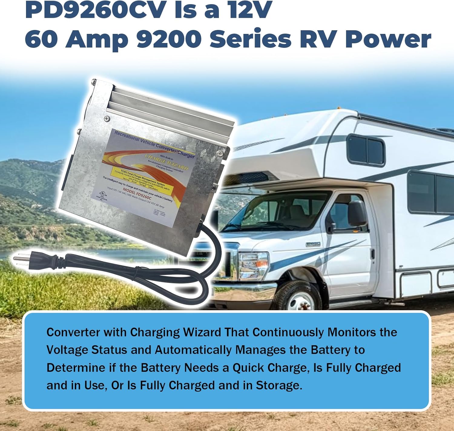 - Convertidor de potencia para RV, camper y caravana: es un convertidor de potencia RV de 12 V 60 amperios serie 9200 con asistente de carga que monitorea continuamente el estado del voltaje y administra automáticamente la batería para determinar si la batería necesita una carga rápida, está completamente cargada y en uso, o está completamente cargada y almacenada.