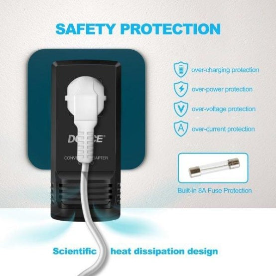 Consigue hoy mismo el adaptador y convertidor universal de viaje Doace y disfruta de la tranquilidad de tener todas tus necesidades de energía cubiertas, vayas donde vayas. Gracias a su compatibilidad con las tomas de corriente de 150 países y regiones que visitas con frecuencia y a su capacidad para dispositivos de hasta 2000 vatios, ya no tendrás que preocuparte por encontrar el adaptador adecuado. Además, con funciones de seguridad como un fusible y un protector de sobretensión integrados, puedes confiar en que tus dispositivos estarán protegidos contra sobrecorrientes, sobrecargas, altas temperaturas y cortocircuitos. No te pierdas este accesorio imprescindible para tu próximo viaje.