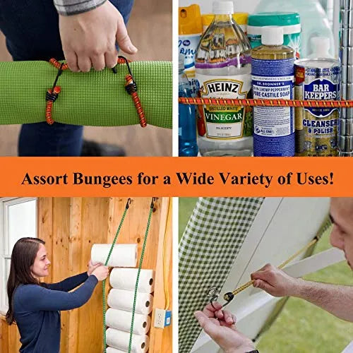 - Una herramienta esencial para proteger la carga y las cargas Para coches, camiones, remolques, caravanas, motocicletas, bicicletas, vehículos todo terreno y también son ideales para uso en exteriores para proteger campamentos, tiendas de campaña, lonas, toldos, cuerdas elásticas de varios tamaños para una amplia variedad de usos.