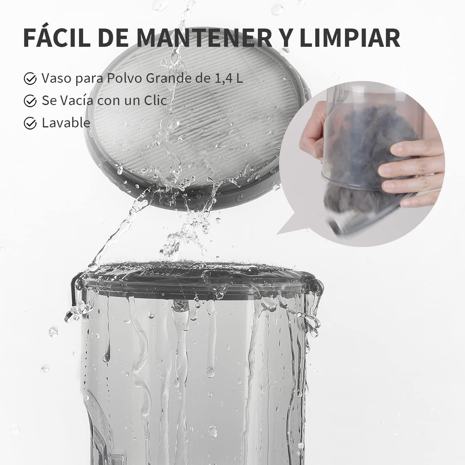 - Caja de Polvo Fácil de Vaciar y Limpiar: La caja de polvo tiene una capacidad de hasta 1,5 litros y es lavable y extraíble. El vaciado del depósito de polvo con un solo toque Evita que se peguen las pelusas y es lavable con agua. El aspirador puede ayudarlo eficazmente a mantener limpio su hogar, y no necesitará tiempo extra de limpieza después de acicalar a su mascota.