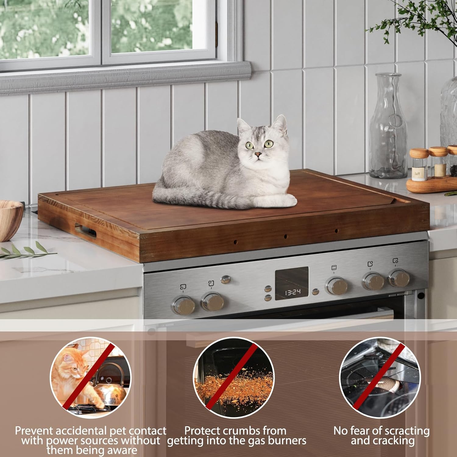 - Protector superior de la estufa: la cubierta superior de la estufa protege la parte superior de la estufa de vidrio de arañazos, grietas de vidrio, suciedad, derrames, manchas o artículos que caen de los gabinetes instalados sobre su estufa; También protege sus cocinas y mesas del desgaste diario