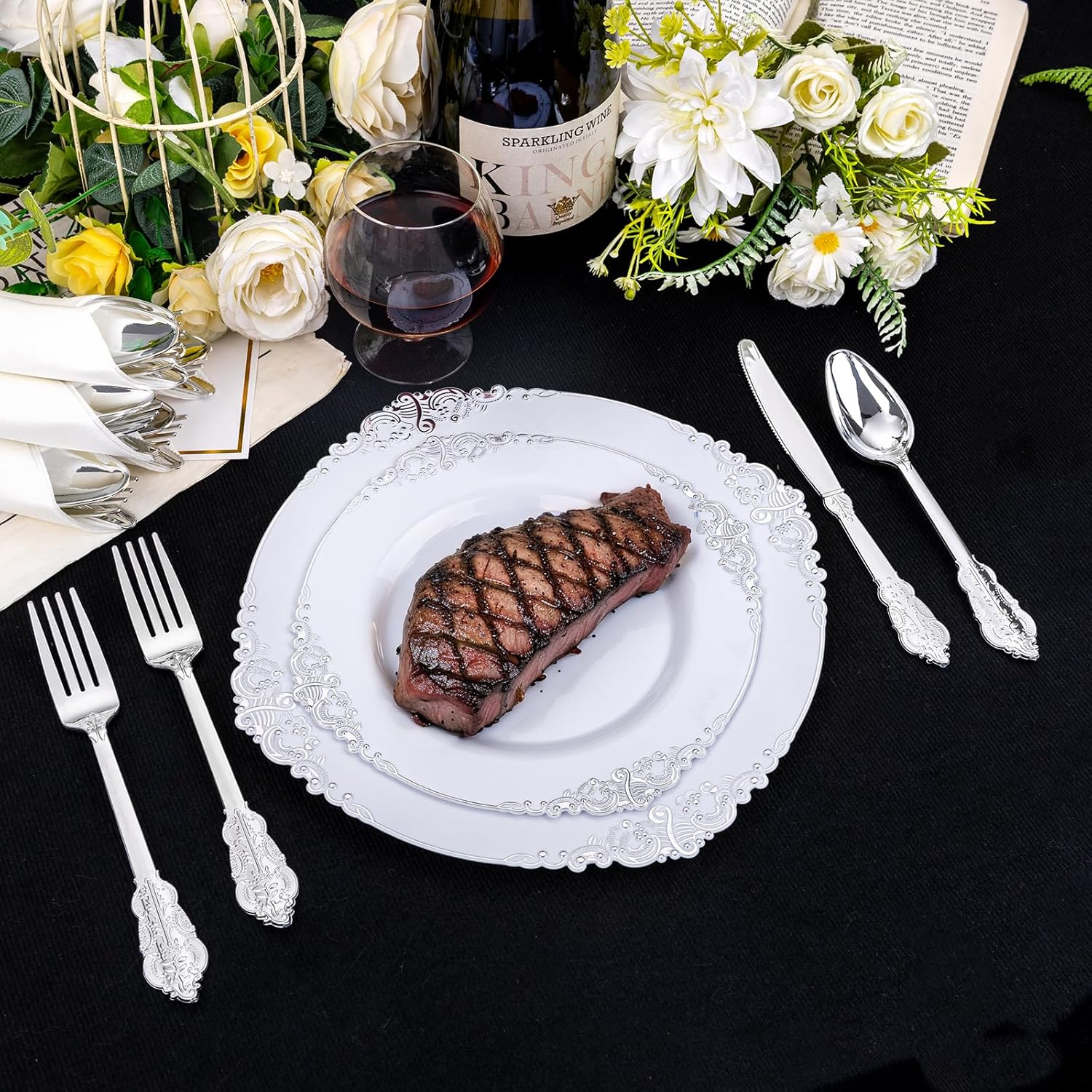 - Material de alta calidad: nuestros cubiertos de plástico plateado están hechos de plástico resistente, resistente y duradero. Los utensilios plateados son de grado alimenticio, se pueden utilizar sin preocupaciones.