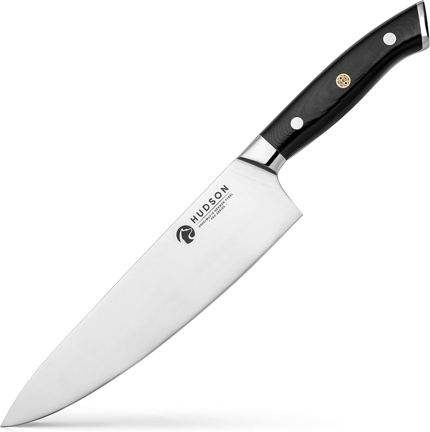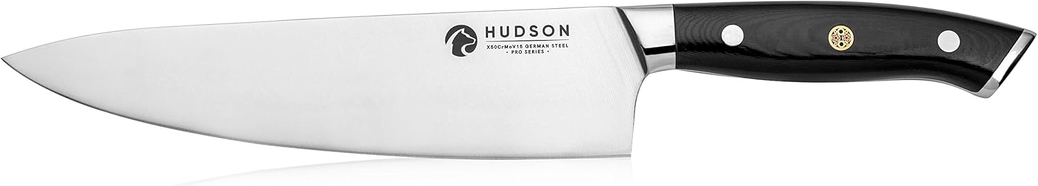 - Los cuchillos de chef Hudson Pro Series son de espiga completa y están forjados con precisión a partir de una sola pieza de acero alemán Thyssen-Krupp de alto carbono. Ofrecen una durabilidad excepcional, retención de filo, resistencia a la corrosión y a las manchas. Afilados a mano a 15 grados por cada lado, los Hudson Pro están impecablemente afilados desde el primer momento, proporcionando un corte preciso y sin esfuerzo en todo momento. El mango está hecho de lino-micarta de primera calidad, funcional, de fácil agarre y extremadamente duradero. Este cuchillo es su herramienta profesional de alto rendimiento, diseñado y forjado para durar toda una vida.