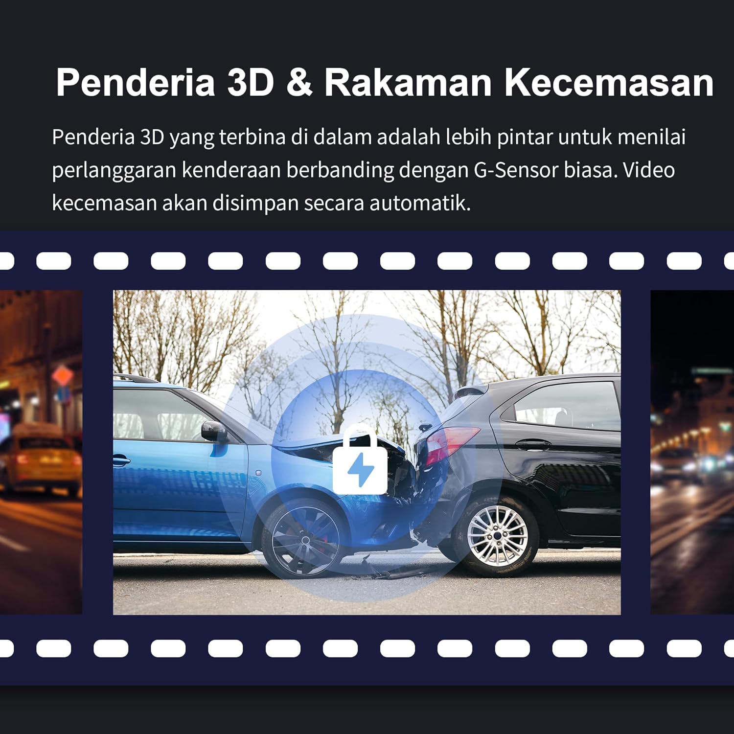 - Sensor 3D y grabación de emergencia: esta cámara de tablero para automóviles incorpora un sensor 3D que es más inteligente para juzgar la colisión del vehículo que el sensor G normal. Grabará automáticamente un video de emergencia cuando ocurra un choque. Y este video no será una cobertura de video en bucle, lo que le ayuda a obtener videos de evidencia precisa en cualquier momento.