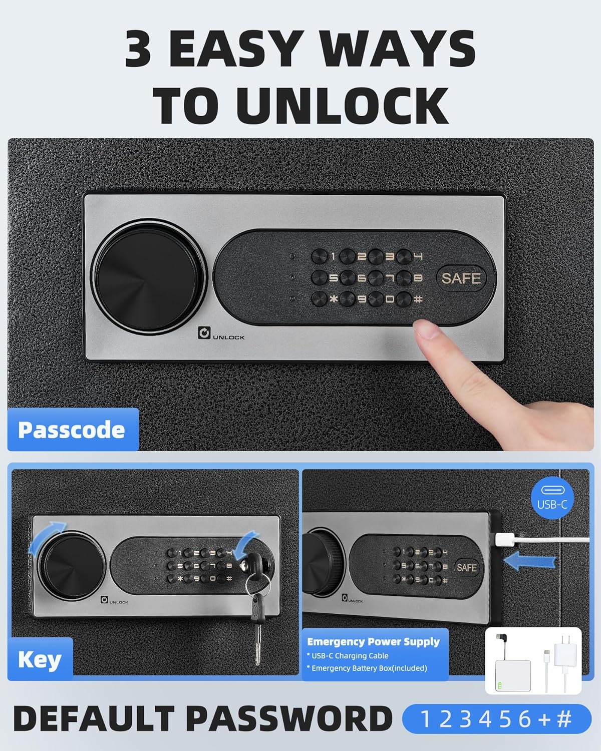 - Panel de bloqueo de diseño elegante: la caja fuerte para el hogar DAYI combina funcionalidad y estética con nuestro diseño de panel patentado, asegurando que tu seguridad se vea tan bien como funciona. Protege tu mundo con DAYI seguro.