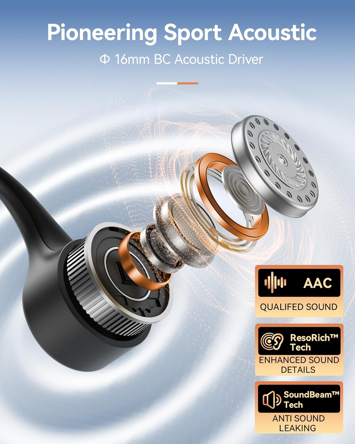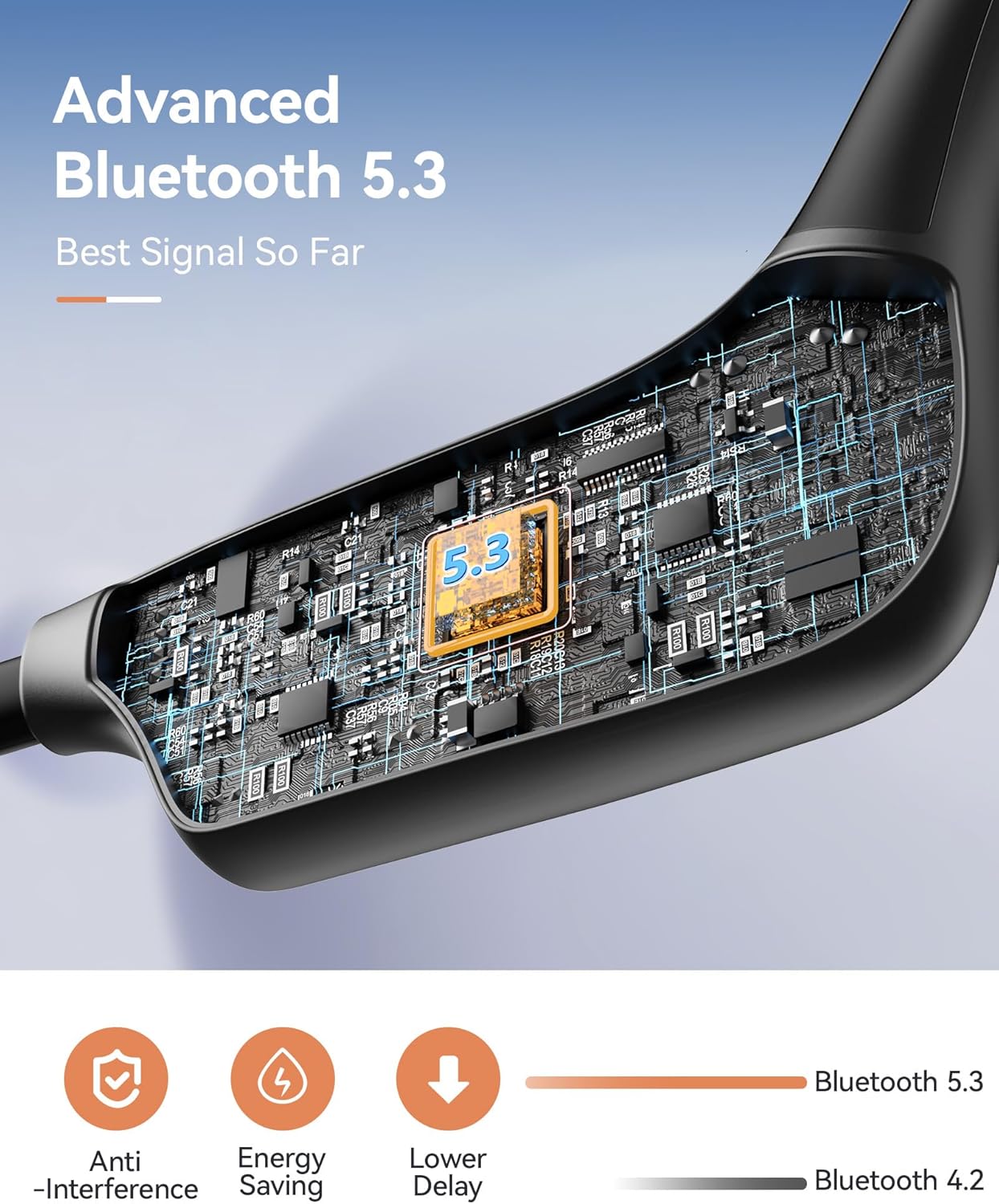 - Auriculares de conducción ósea de oído abierto, sin bloqueo de oído por el sudor, ajuste cómodo. Con un peso de solo 1 onzas, fabricado con un marco de aleación de Ti de memoria flexible de 0,7 mm y silicona agradable al tacto para el puente trasero, asegurando una forma óptima continua. Distribución equilibrada del peso para máxima comodidad durante todo el día sin obstaculizar el uso de Los cojines de silicona suaves y agradables al tacto en la parte delantera de las orejas garantizan un tacto suave y un ajuste alto, sin alergias ni molestias.