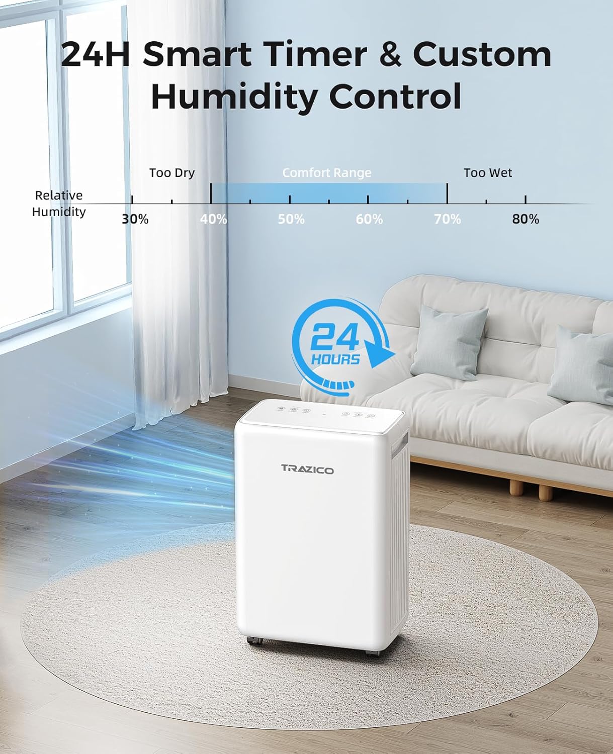 - Potente control de humedad para cada habitación: nuestro potente deshumidificador de sótano elimina hasta 30 pintas de humedad por día para habitaciones de hasta 2000 pies cuadrados. pies (menos de 95 °F, 90% RH). Perfecto para sótanos, salas de estar, dormitorios, baños, cocinas, caravanas y oficinas, mantiene un nivel de humedad saludable del 35% al 55% sin esfuerzo y reduce costos durante todo el año. Disfruta de un hogar más fresco y cómodo con una calidad de aire optimizada