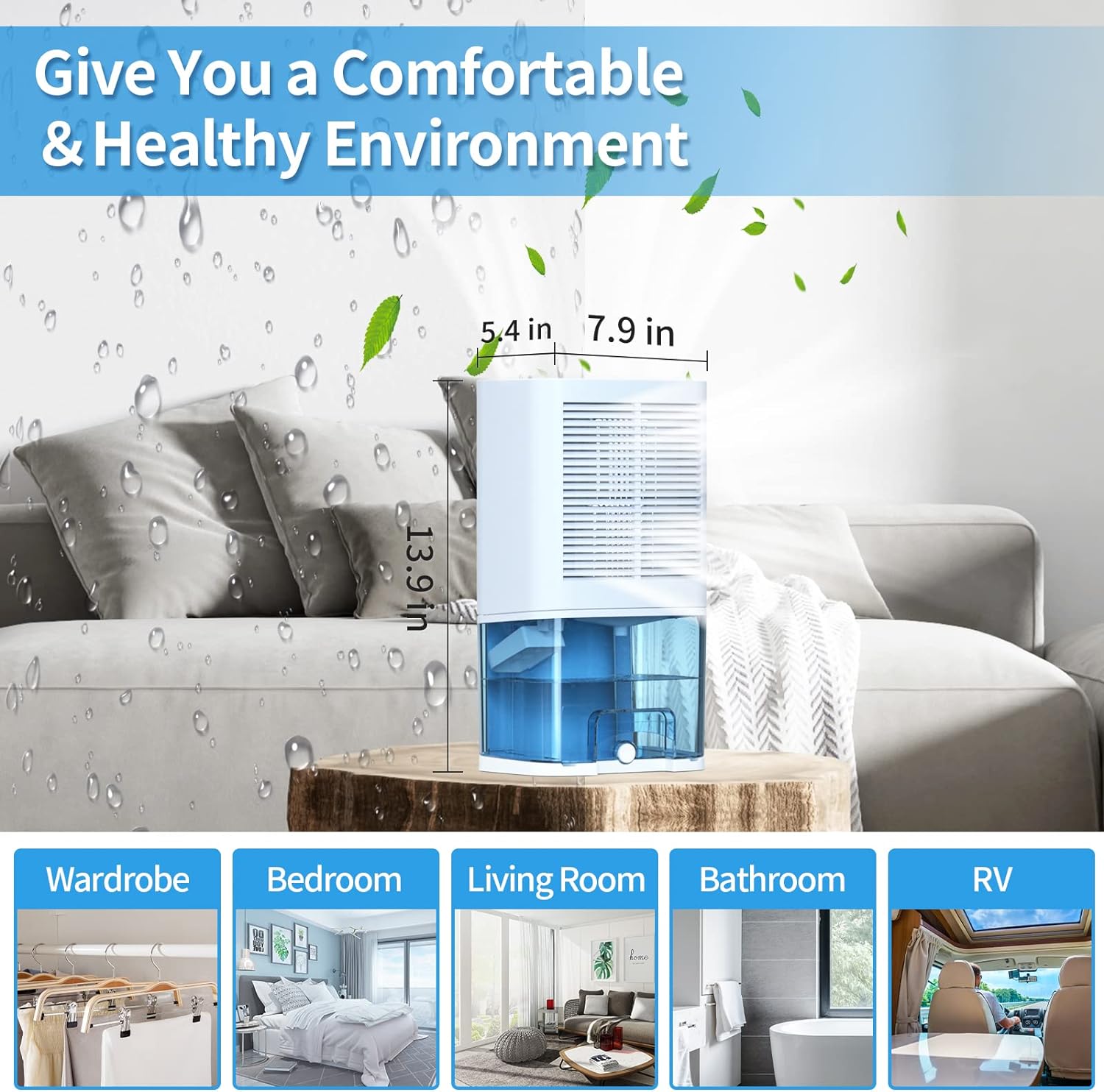- Portátil y ahorra espacio: este deshumidificador para el hogar viene con un diseño de mango y tamaños: 7.9 x 5.4 x 13.9 pulgadas, listo para colocar en cualquier lugar: dormitorio, sótano, armario, caravana. Los deshumidificadores mejoran la calidad del aire en su hogar y crean un ambiente cómodo y saludable para usted.