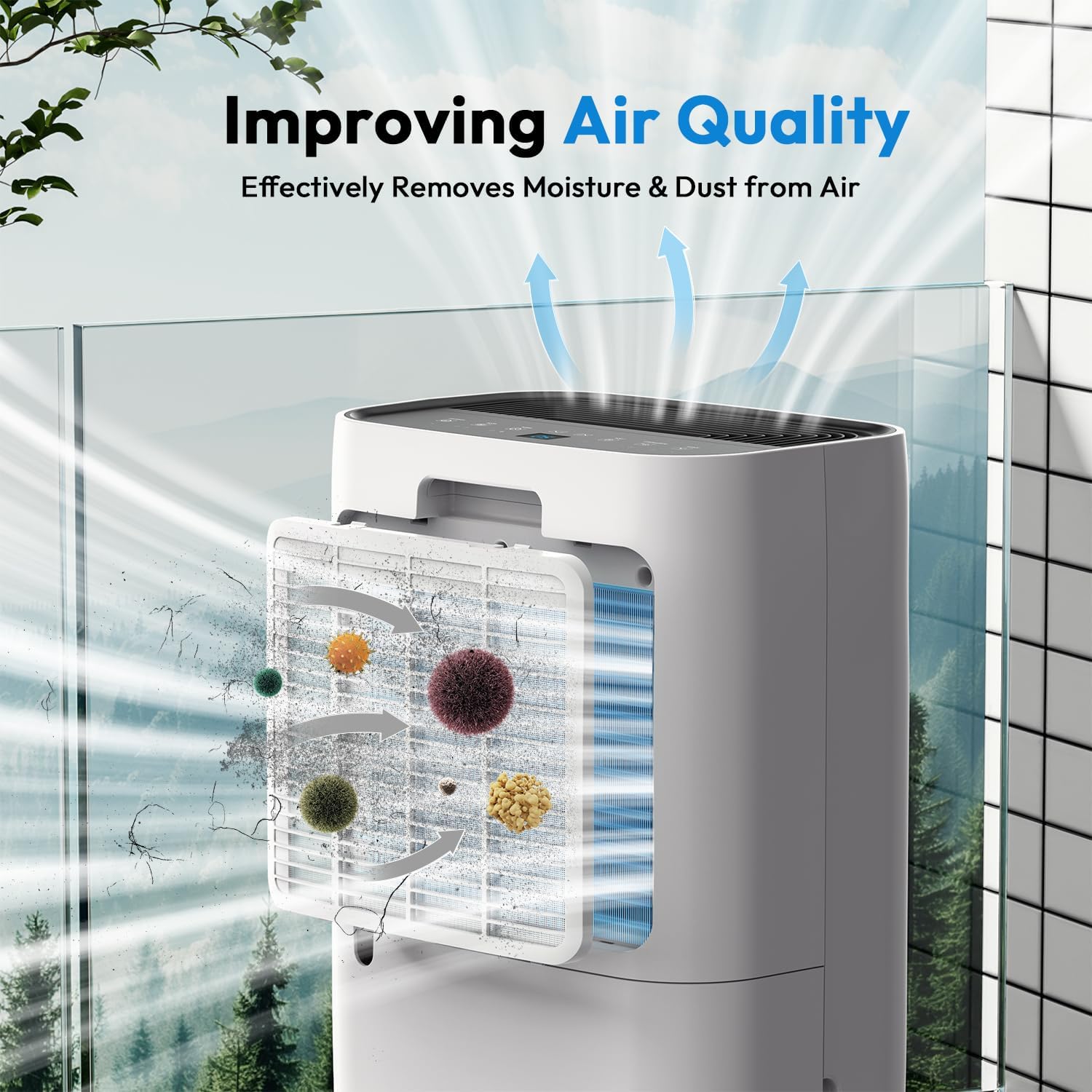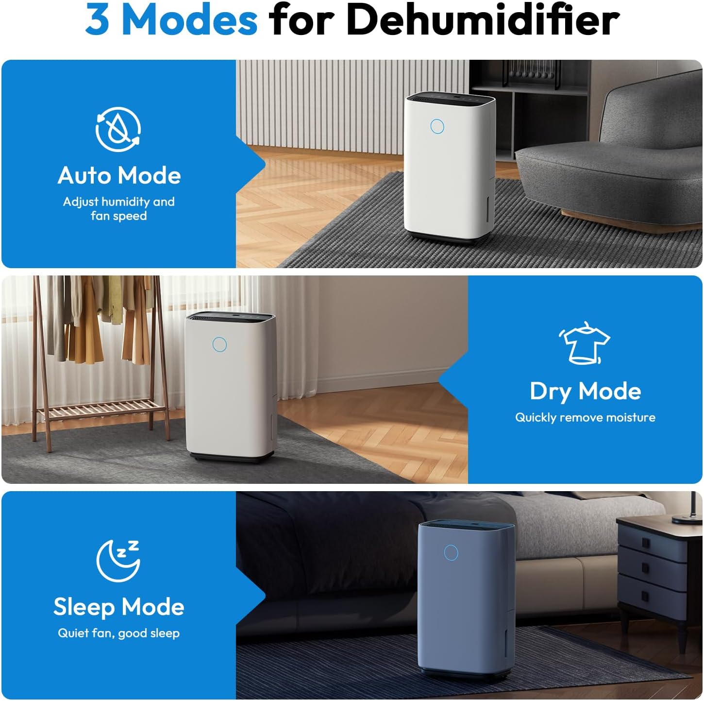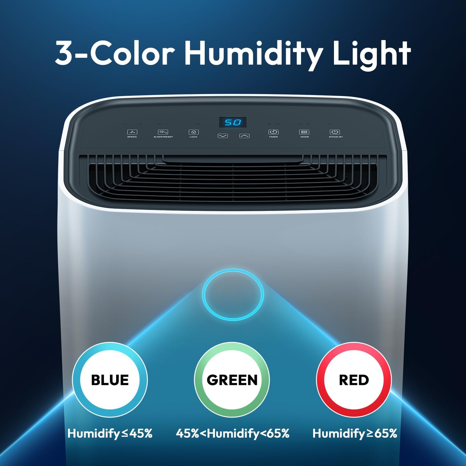 Deshumidificador de sótano de 4500 pies cuadrados, deshumidificador doméstico de 50 pintas con manguera de drenaje, modo de suspensión silenciosa, apagado automático, indicador de humedad y descongelación automática.