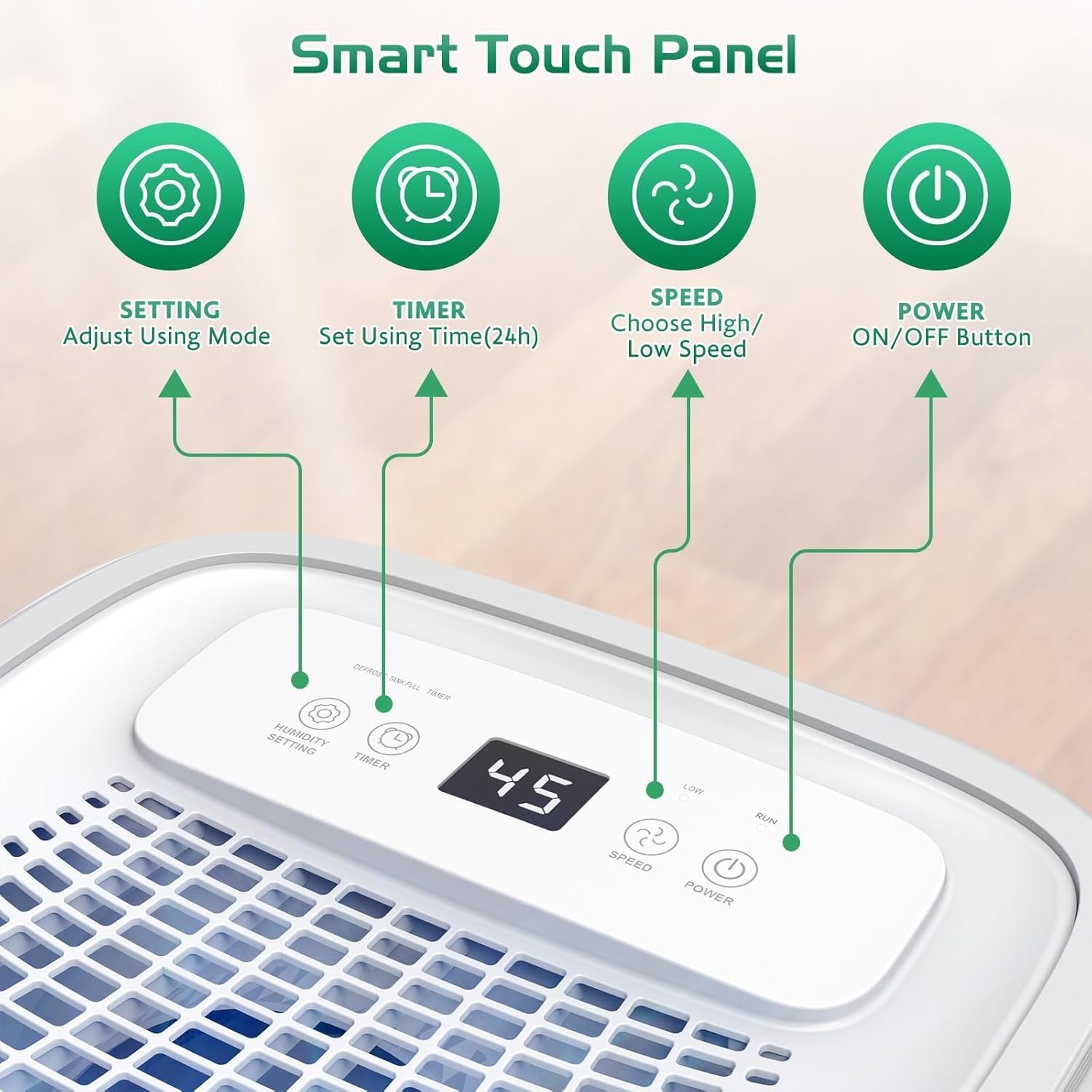 Este deshumidificador para el hogar cuenta con un diseño silencioso avanzado que garantiza un nivel de ruido de no más de 40 decibelios durante el funcionamiento. Además, equipado con una función de ajuste de tiempo de conmutación automática las 24 horas, le permite disfrutar de un entorno tranquilo y reparador después de un largo día de trabajo. Por lo tanto, puedes relajarte, relajarte y recargar con comodidad sin ningún tipo de molestias.