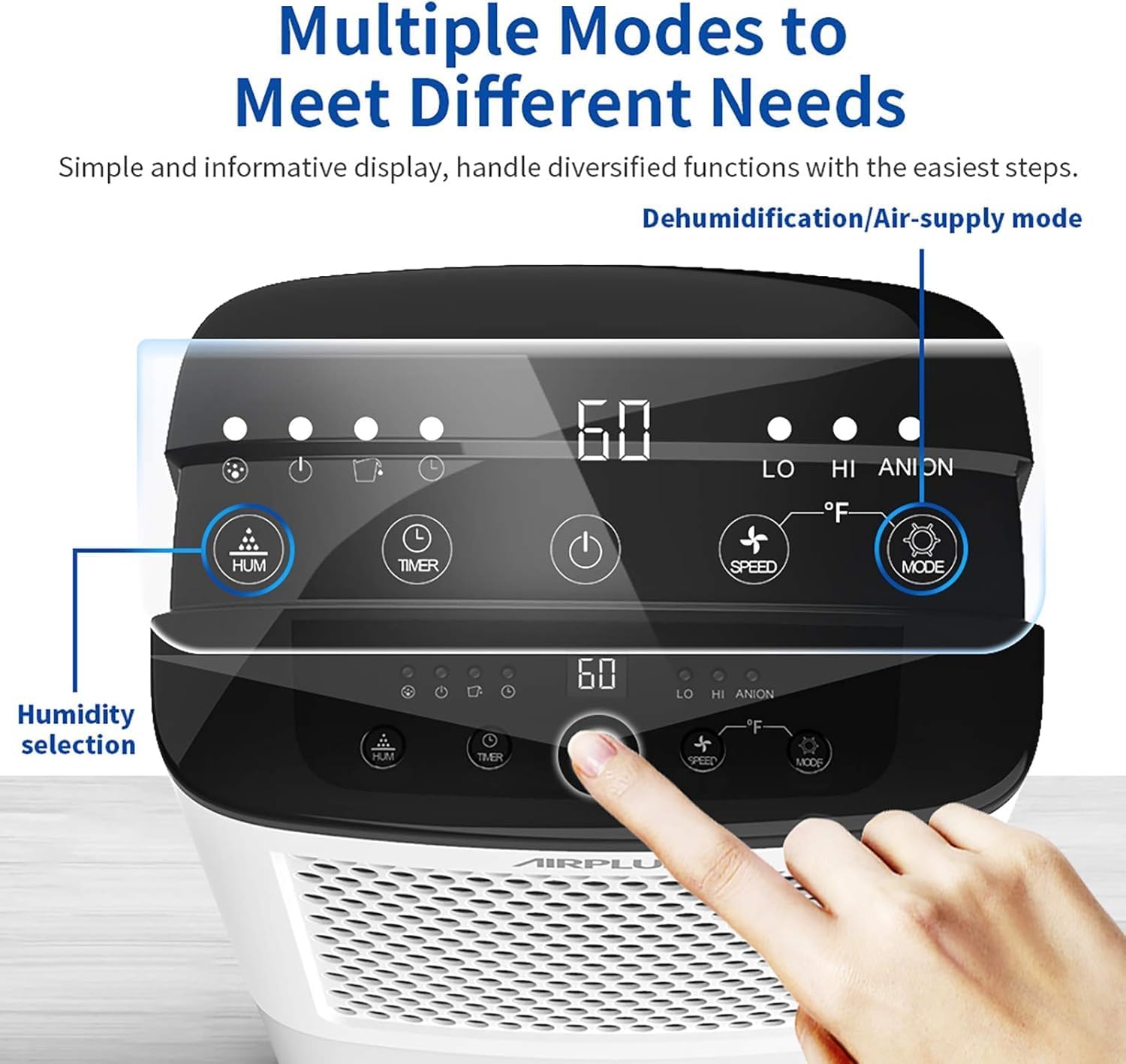 El deshumidificador para sótanos es fácil de usar. Con nuestro manual, todos los ajustes se realizan con cinco botones, sin complicaciones. Además, cuenta con función de encendido/apagado automático; simplemente configúrelo y disfrute de su tiempo sin preocupaciones. Cree un estilo de vida agradable y cómodo con AIRPLUS.