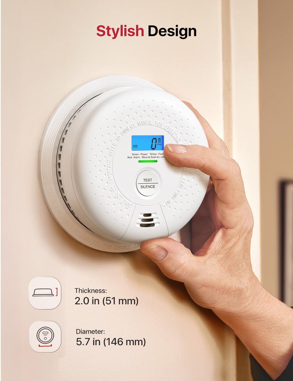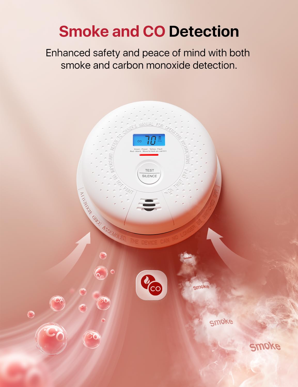 - Protección 2 en 1: Este detector de combinación protege a su familia contra dos peligros: humo y monóxido de carbono.