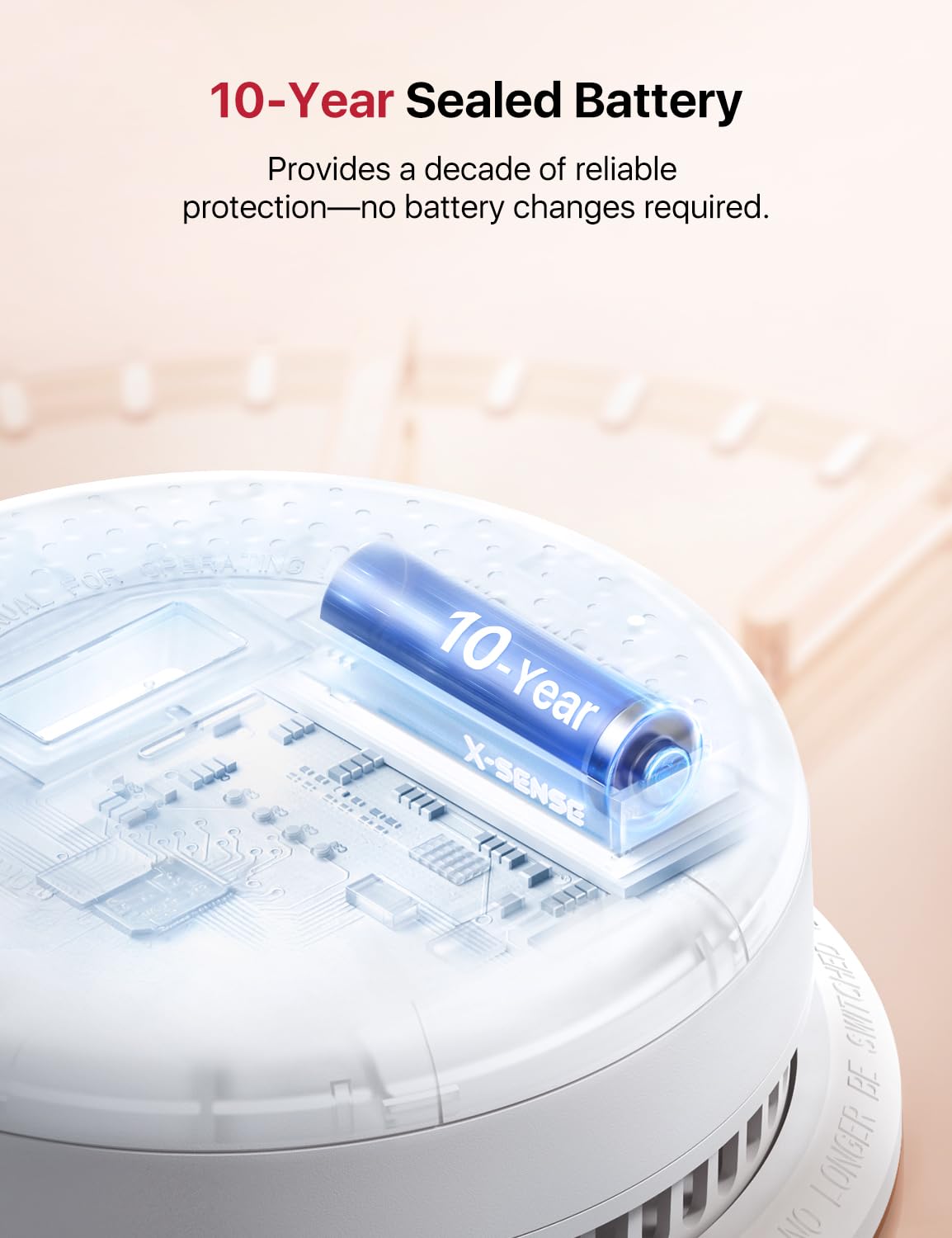 - Batería sellada de 10 años: contiene una batería de litio de larga duración que alimenta el dispositivo durante toda su vida útil de 10 años.