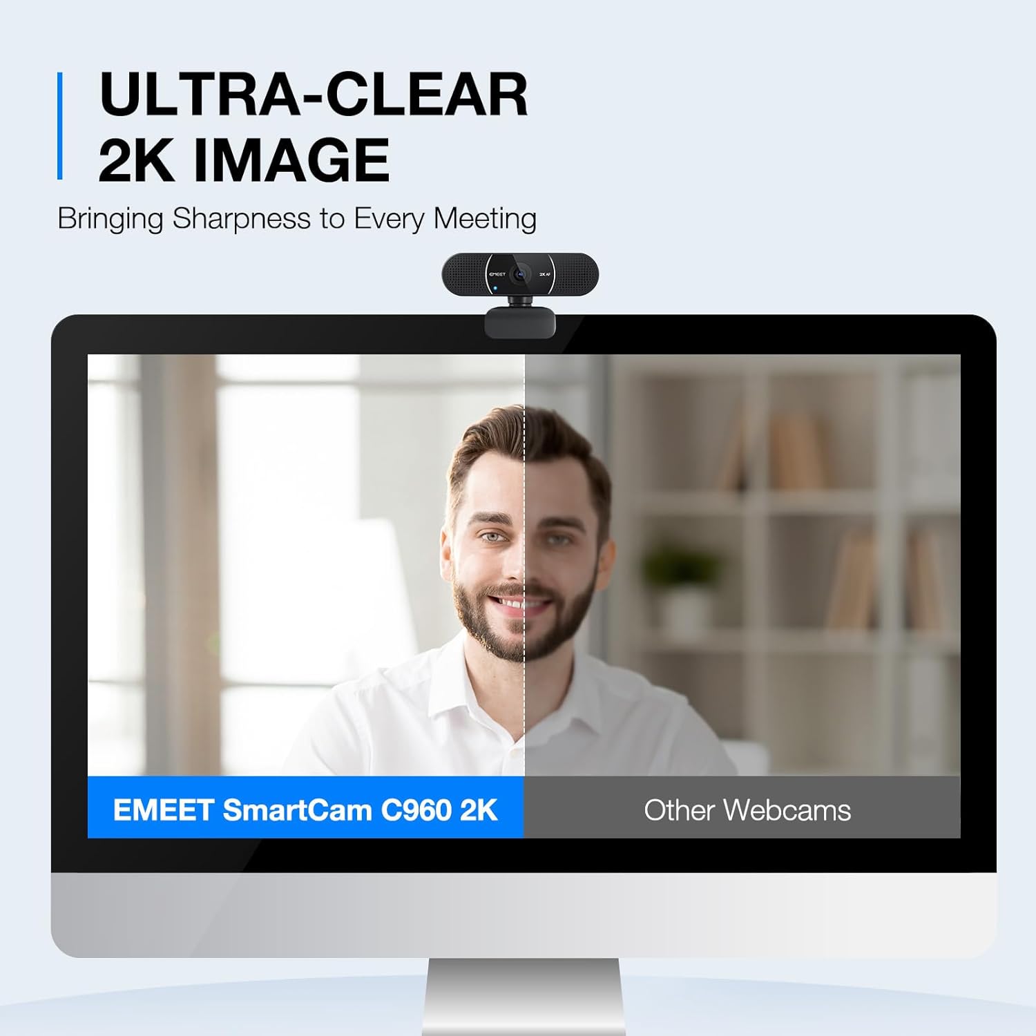 - Cámara web 2K C960: claridad y privacidad: mejora tus videollamadas con la cámara web 2K C960 para computadora. Disfruta de una resolución 2K nítida y una velocidad de fotogramas de 30 FPS. ¿Te preocupa la privacidad? No hay problema. La cámara web tiene una tapa de privacidad extraíble. Perfecta para trabajar desde casa o en cualquier entorno de alta privacidad. Mejora tu comunicación por video con la cámara web 2K C960 para computadora.