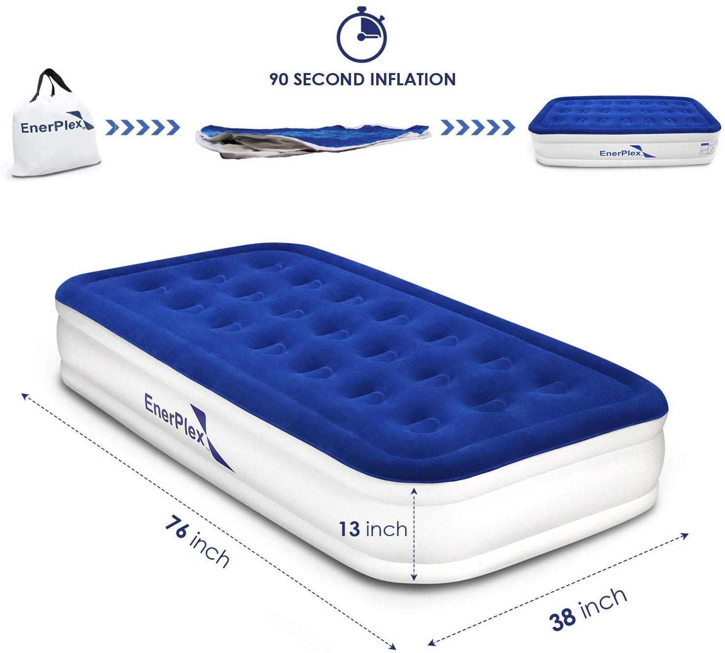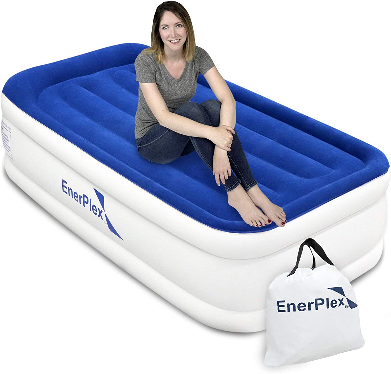EnerPlex Premium - Colchón lujoso de aire de doble bomba, con bomba integrada, elevada doble para casa, campamento, viajes.