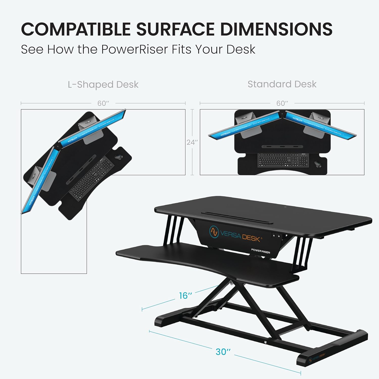 Transforma el escritorio de tu oficina en casa en un escritorio ergonómico con altura ajustable con el convertidor de escritorio Versadesk Power Riser. Se coloca sobre tu escritorio actual, convirtiendo tu oficina en un espacio de trabajo productivo que te permite concentrarte mejor, disfrutar de un estilo de vida saludable y un estilo de vida activo. Disfruta de la espaciosa estación de trabajo con diseño de dos niveles, superficie de 81 x 61 cm y una amplia bandeja para teclado desmontable de 80 x 30 cm.