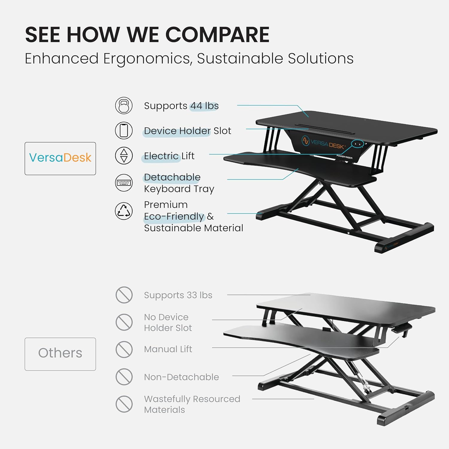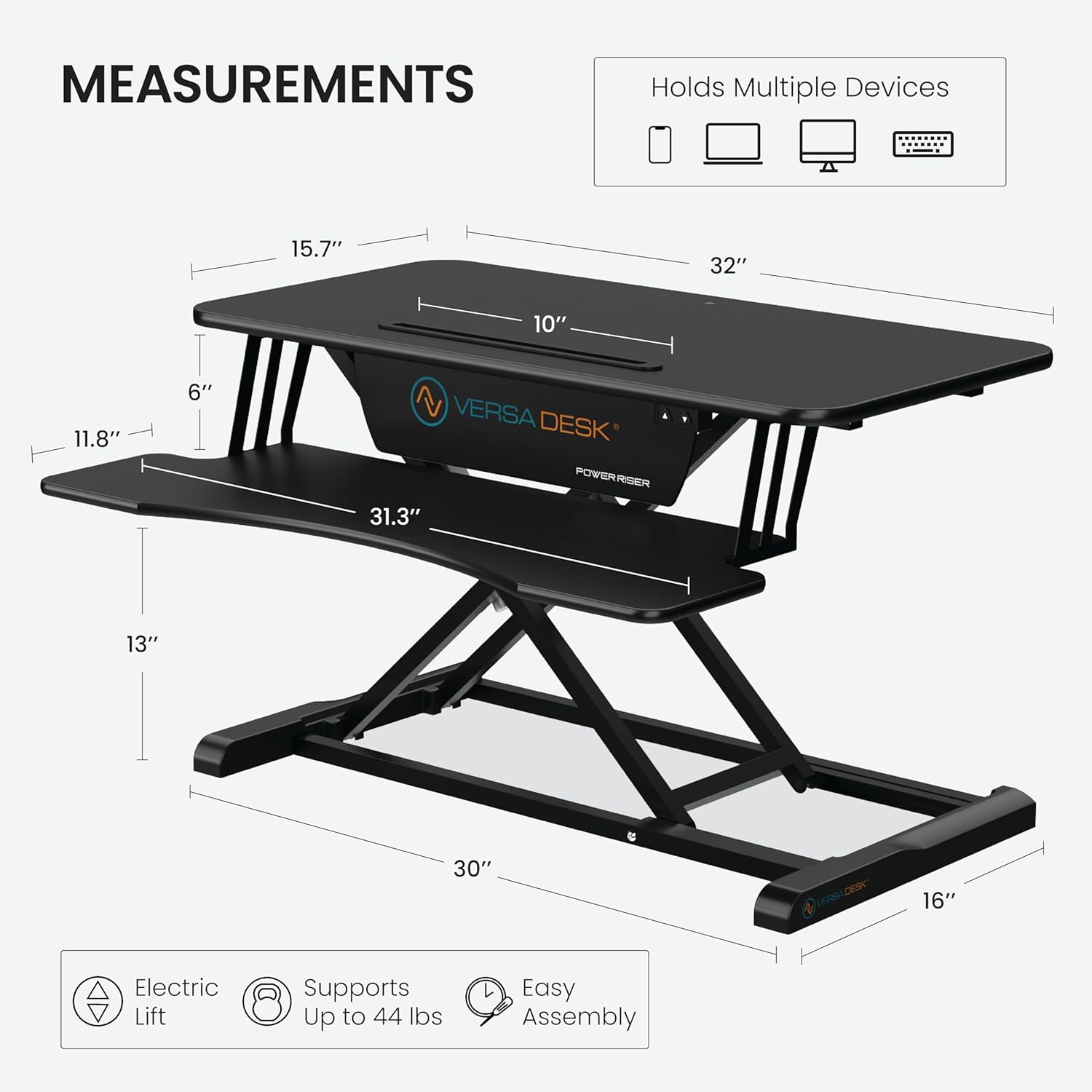 Escritorio eléctrico de 32", Versadesk, altura ajustable, bandeja p/teclado